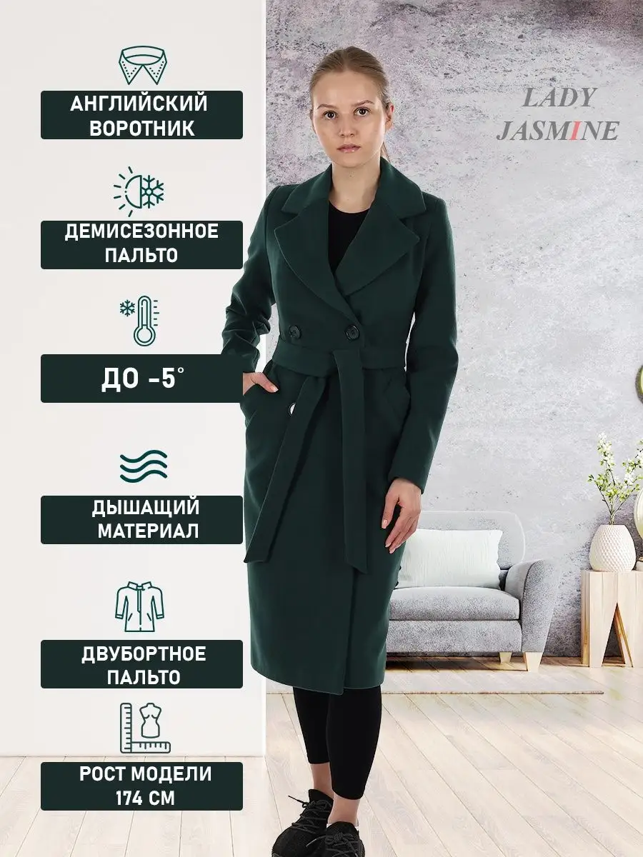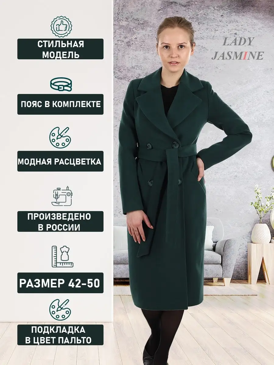 Описание: Двубортное пальто прилегающего силуэта. Длина пальто по спинке фиксированная для всех размеров - 110 см. (+ -3%). Рекомендованный температурный режим от +10 до -5 градусов. Температурный режим зависит от многих факторов (климатическая зона, уровень активности, физиологические особенности организма) и носит рекомендательный характер. Особенностью модели является шерстяная ткань мягкая, бархатистая и дышащая. Модель имеет прорезные карманы с листочкой, застежку на пуговицы. Пояс из основной ткани в комплекте. Шлица для удобства ходьбы. Лаконичная модель выгодно подчеркнёт фигуру и с легкостью впишется в любой гардероб. Рост девушки модели 174 см. Дорогие наши покупательницы! Мы, производитель пальто Lady Jasmine, не торгуем со своего склада. Все наши пальто хранятся на складах WB и уже оттуда отправляются к Вам, на основании заявок от Вас. Мы не задерживаем отправку к Вам наших пальто, так как не можем на это повлиять. При отправке товара мы не путаем наши пальто с чужими товарами, так как у нас нет других товаров, кроме наших пальто. Мы не делаем пересортицу по моделям, размерам и расцветкам пальто, так как мы не формируем отправки к Вам. Мы не производим переупаковку наших пальто на складах WB в комок, замотанный скотчем, так у нас нет доступа к складам WB. Мы не удерживаем с Вас стоимость возвратов, точно так же, как и не выдаём Вам чек о покупке нашего пальто, так как это не мы продали Вам пальто Lady Jasmine. Мы не теряем наши пояса, потому что перед отправкой в WB наша продукция проходит ОТК. Мы не эксплуатируем наши пальто перед отправкой в WB. Мы не отрываем пуговицы «с мясом» от наших пальто. Надеемся, в случае возникновения проблем, Вы оформите пальто как брак, для изъятия из оборота, иначе оно отправиться к другому покупателю. Для нас важно, чтобы каждая наша покупательница осталась довольна покупкой и собой. Со склада производителя Lady Jasmine, пальто отправляются в полной комплектации и в идеальном виде - отпаренные и упакованные в запаянные полиэтиленовые чехлы, с индивидуальной вешалкой, в состоянии «получила, надела, ушла с улыбкой».