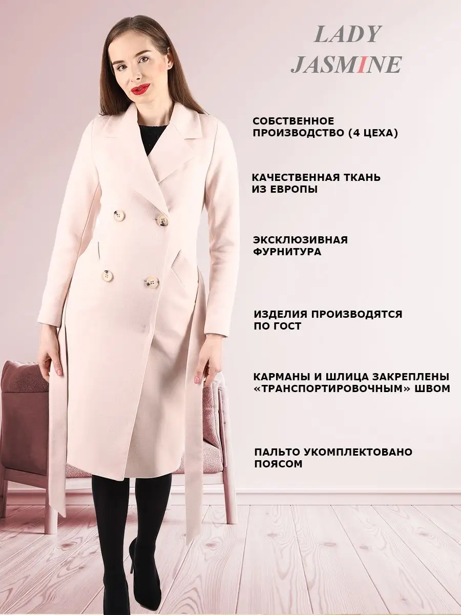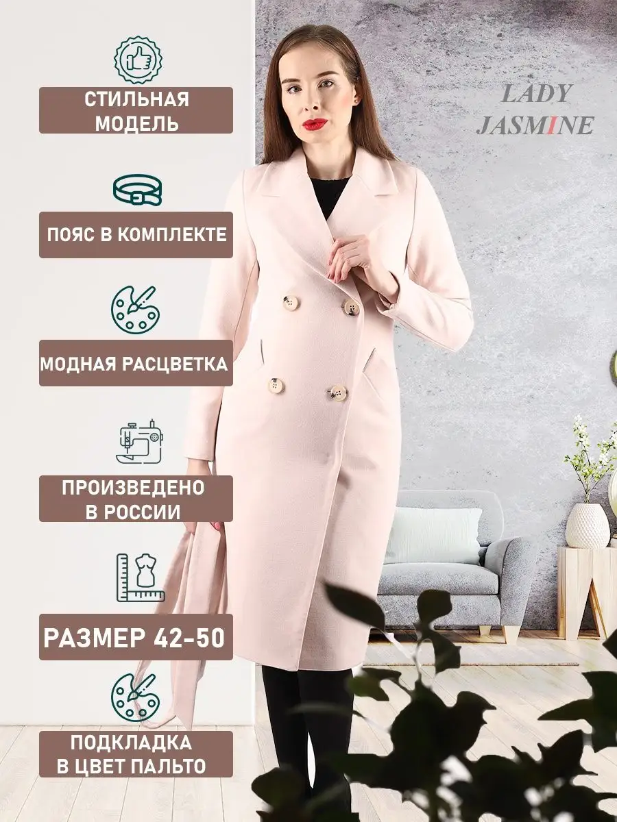 Описание: Двубортное пальто прилегающего силуэта. Длина пальто по спинке фиксированная для всех размеров - 110 см. (+ -3%). Рекомендованный температурный режим от +10 до -5 градусов. Температурный режим зависит от многих факторов (климатическая зона, уровень активности, физиологические особенности организма) и носит рекомендательный характер. Особенностью модели является шерстяная ткань мягкая, бархатистая и дышащая. Модель имеет прорезные карманы с листочкой, застежку на пуговицы. Пояс из основной ткани в комплекте. Шлица для удобства ходьбы. Лаконичная модель выгодно подчеркнёт фигуру и с легкостью впишется в любой гардероб. Рост девушки модели 174 см. Дорогие наши покупательницы! Мы, производитель пальто Lady Jasmine, не торгуем со своего склада. Все наши пальто хранятся на складах WB и уже оттуда отправляются к Вам, на основании заявок от Вас. Мы не задерживаем отправку к Вам наших пальто, так как не можем на это повлиять. При отправке товара мы не путаем наши пальто с чужими товарами, так как у нас нет других товаров, кроме наших пальто. Мы не делаем пересортицу по моделям, размерам и расцветкам пальто, так как мы не формируем отправки к Вам. Мы не производим переупаковку наших пальто на складах WB в комок, замотанный скотчем, так у нас нет доступа к складам WB. Мы не удерживаем с Вас стоимость возвратов, точно так же, как и не выдаём Вам чек о покупке нашего пальто, так как это не мы продали Вам пальто Lady Jasmine. Мы не теряем наши пояса, потому что перед отправкой в WB наша продукция проходит ОТК. Мы не эксплуатируем наши пальто перед отправкой в WB. Мы не отрываем пуговицы «с мясом» от наших пальто. Надеемся, в случае возникновения проблем, Вы оформите пальто как брак, для изъятия из оборота, иначе оно отправиться к другому покупателю. Для нас важно, чтобы каждая наша покупательница осталась довольна покупкой и собой. Со склада производителя Lady Jasmine, пальто отправляются в полной комплектации и в идеальном виде - отпаренные и упакованные в запаянные полиэтиленовые чехлы, с индивидуальной вешалкой, в состоянии «получила, надела, ушла с улыбкой».
