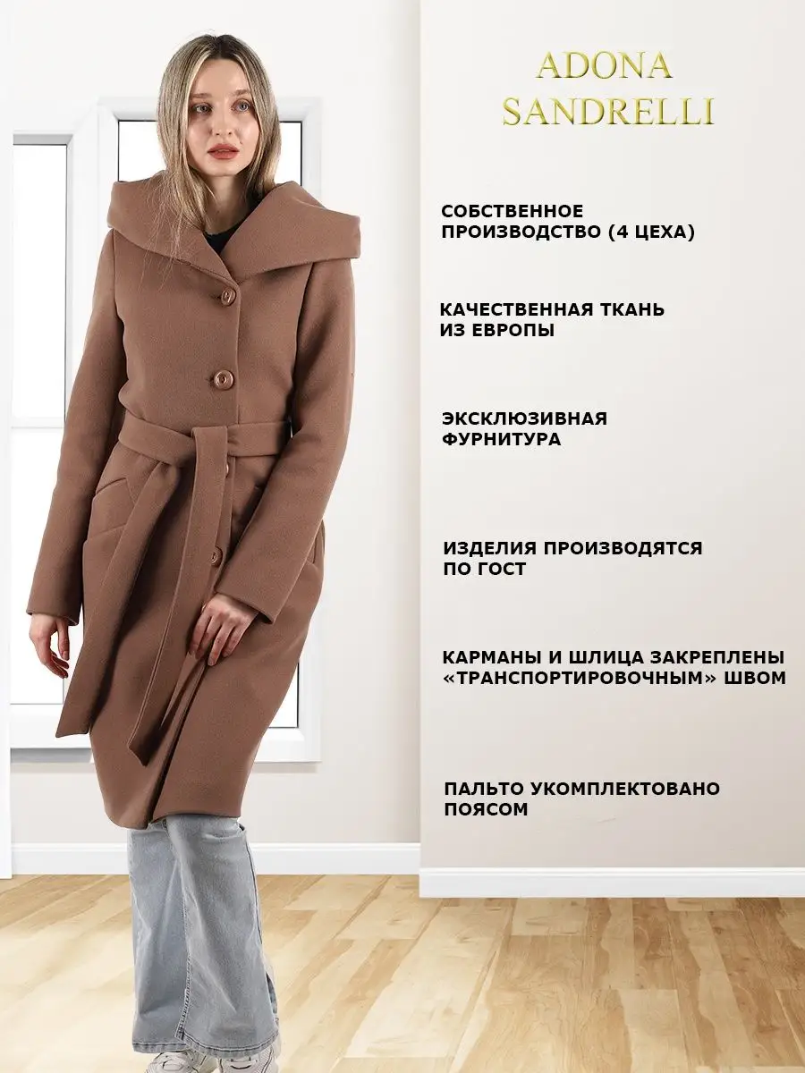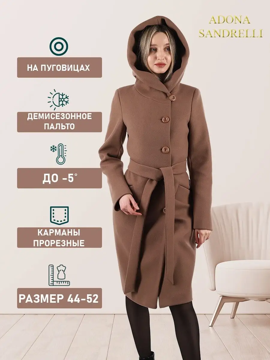 Описание: Представляем Вашему вниманию стильное женское пальто из новой коллекции Adona Sandrelli - демисезонное пальто, идеально подходящее для осени и весны. Это модное современное пальто прямого силуэта - универсальная модель, которая способна придать женственности и шарма даже самому обычному образу. Длина пальто по спинке для всех размеров составляет 101 см. (+ - 3%). Длина рукава в размерах 44 по 46 - 63 см., в размерах 48 по 52 - 64 см. Температурный режим позволяет носить его при температуре от +10 до -5 градусов. Температурный режим зависит от многих факторов (климатическая зона, ветровая нагрузка в данный момент, влажность, уровень Вашей активности, физиологические особенности организма, дополнительная одежда) и носит рекомендательный характер. Обратите внимание, что температурный режим зависит от индивидуальной восприимчивости к холоду и от Вашего теплообмена. Особенностью этой модели является несъемный капюшон, который позволяет менять образ и подстраиваться под разные погодные условия. Он позволяет менять образ и подстраиваться под разные погодные условия. Застегивается на пуговицы в тон пальто. Прорезные карманы украшены широкой листочкой, которая придает модели особый шарм. Пальто имеет пояс из основной ткани, который красиво подчеркивает талию. Данная модель пальто специально пошита без шлевок (петелек для пояса), так как данную модель пальто Вы можете носить как с поясом, так и без пояса. Смотря какое у Вас настроение)) Именно поэтому на этой модели отсутствуют шлёвки. Застегивается пальто на пуговицы в один цвет с пальто, создавая эффект единого целого. Это демисезонное женское пальто доступно в больших размерах и идеально подходит для молодежной и современной коллекции. Оно также подходит для беременных на ранних сроках. Пальто сделано из шерстяной ткани, что обеспечивает тепло и комфорт в непогоду. Прекрасно сочетается с вашим осенне-зимним гардеробом. Модель придумана для Вашего удобства и комфорта, идеально подходит как на повседневных прогулках по городу, так и на деловых встречах. Пальто на рекламных фотографиях представлено в двух вариантах стиля: классическом и повседневном, Вы можете самостоятельно выбрать свой образ. Рост девушек моделей на фото и видео составляет 170-174 см. Зная свой рост, Вы можете спроектировать длину пальто на себя. Это модное пальто станет прекрасным дополнением к вашему осенне-зимнему гардеробу. Чтобы поддерживать новое состояние пальто, рекомендуется в конце каждого сезона пользоваться услугами химчистки. Это теплое, универсальное и функциональное пальто пошито и в больших размерах, до 52-го размера включительно. Во избежание споров (пальто маломерит, или большемерит) предлагаем всем ознакомиться с нижеприведенной таблицей по размерной сетке (ОГ-ОТ-ОБ): 42-ой размер: ОГ82-86, ОТ62-66, ОБ90-94; 44-ый размер: ОГ86-90, ОТ66-70, ОБ94-98; 46-ой размер: ОГ90-94, ОТ70-74, ОБ98-102; 48-ой размер: ОГ94-98, ОТ74-78, ОБ102-106; 50-ый размер: ОГ98-102, ОТ78-82, ОБ106-110; 52-ой размер: ОГ102-106, ОТ82-86, ОБ110-114. Непревзойденная и привлекательная верхняя одежда, которую можно надеть как на прогулку, так и в офисе, на встречу, свидание или на вечеринку. Карманы и подкладка, качество и дизайн - каждый элемент проработан до совершенства. Это модное, современное и молодежное пальто, которое станет прекрасным дополнением к вашему гардеробу. Дорогие наши покупательницы!