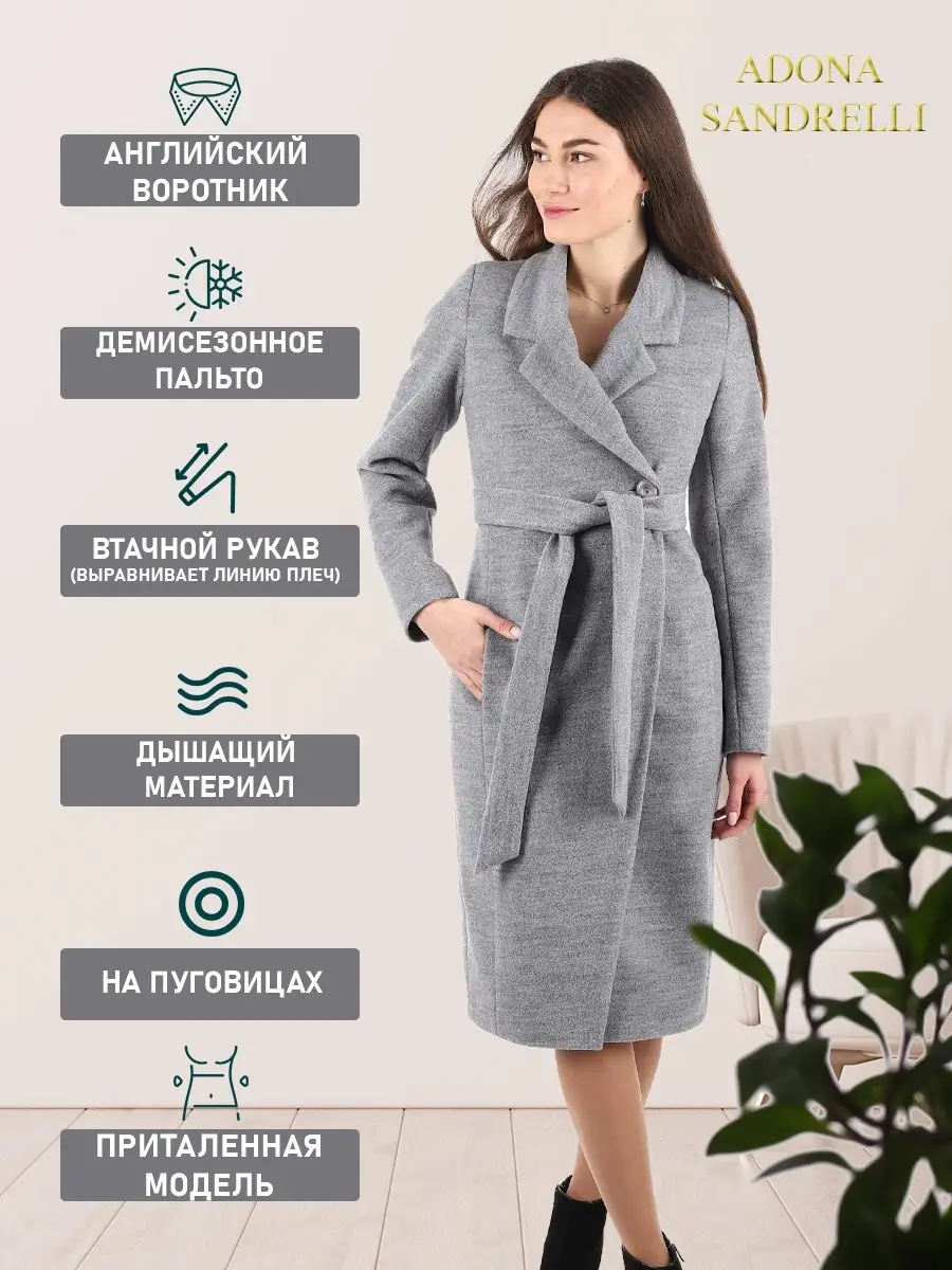 Описание: Женственное однобортное пальто облегающего покроя с прорезными карманами в швах и английским отложным воротником. Длина пальто по спинке, для всех размеров 110 см. (+ - 3%). Температурный режим от +10 до -5 градусов. Особенностью модели является дышащий материал. Модель пальто маломерит. Рост девушек моделей 174-179 см. Дорогие наши покупательницы! Мы, производитель пальто Adona Sandrelli, не торгуем со своего склада. Все наши пальто хранятся на складах WB и уже оттуда отправляются к Вам, на основании заявок от Вас. Мы не задерживаем отправку к Вам наших пальто, так как не можем на это повлиять. При отправке товара мы не путаем наши пальто с чужими товарами, так как у нас нет других товаров, кроме наших пальто. Мы не делаем пересортицу по моделям, размерам и расцветкам пальто, так как мы не формируем отправки к Вам. Мы не производим переупаковку наших пальто на складах WB в комок, замотанный скотчем, так у нас нет доступа к складам WB. Мы не удерживаем с Вас стоимость возвратов, точно так же, как и не выдаём Вам чек о покупке нашего пальто, так как это не мы продали Вам пальто Adona Sandrelli. Мы не теряем наши пояса, потому что перед отправкой в WB наша продукция проходит ОТК. Мы не пачкаем наши пальто перед отправкой. Мы не отрываем пуговицы «с мясом» от наших пальто. Мы не эксплуатируем наши пальто перед отправкой в WB. Надеемся, в случае возникновения проблем, Вы оформите пальто как брак, для изъятия из оборота, иначе оно отправиться к другому покупателю. Для нас важно, чтобы каждая наша покупательница осталась довольна покупкой и собой. Со склада производителя Adona Sandrelli, пальто отправляются в полной комплектации и в идеальном виде - отпаренные и упакованные в запаянные полиэтиленовые чехлы, с индивидуальной вешалкой, в состоянии «получила, надела, ушла с улыбкой».