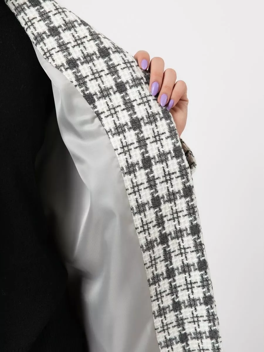 Описание: Легкое женское полупальто современного силуэта от KERA оценят любители стиля Casual и автоледи. Широкий сверху и зауженный снизу крой позволяет носить пальто с толстовками, объемными шарфами и даже с худи. Спущенная пройма и свободная форма прекрасно смотрится как на невысоких, так и на стройных. Высококачественная подкладочная ткань обеспечивает удобство надевания и долговечность изделия. Наденьте полушерстяной однобортный жакет на пуговицах поверх водолазки или футболки, на учебу или на работу, на улицу или внутри помещения, смело экспериментируйте с образами и сочетаниями. Укороченное до 90см женское кашемировое пальто для ранней осени и поздней весны с диапазоном температур от +5 до +15. Для более низких температур воздуха и ветреной дождливой или снежной погоды выбирайте в каталоге нашего бренда теплое удлиненное драповое или стеганое утепленное пальто из плащевого материала, куртку на синтепоне или пуховик! Тонкое летнее пальто для девушек и молодых женщин представлено в размерах 42 – 52 и широкой цветовой гамме от однотонных до клетчатых. Перед эксплуатацией изделия не забудьте освободить прорезные карманы листочки от защитной строчки!