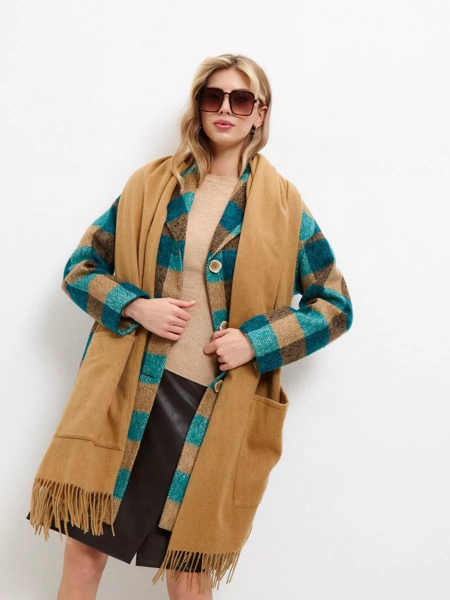 Описание: Легкое женское полупальто современного силуэта от KERA оценят любители стиля Casual и автоледи. Широкий сверху и зауженный снизу крой позволяет носить пальто с толстовками, объемными шарфами и даже с худи. Спущенная пройма и свободная форма прекрасно смотрится как на невысоких, так и на стройных. Высококачественная подкладочная ткань обеспечивает удобство надевания и долговечность изделия. Наденьте полушерстяной однобортный жакет на пуговицах поверх водолазки или футболки, на учебу или на работу, на улицу или внутри помещения, смело экспериментируйте с образами и сочетаниями. Укороченное до 90см женское кашемировое пальто для ранней осени и поздней весны с диапазоном температур от +5 до +15. Для более низких температур воздуха и ветреной дождливой или снежной погоды выбирайте в каталоге нашего бренда теплое удлиненное драповое или стеганое утепленное пальто из плащевого материала, куртку на синтепоне или пуховик! Тонкое летнее пальто для девушек и молодых женщин представлено в размерах 42 – 52 и широкой цветовой гамме от однотонных до клетчатых. Перед эксплуатацией изделия не забудьте освободить прорезные карманы листочки от защитной строчки!