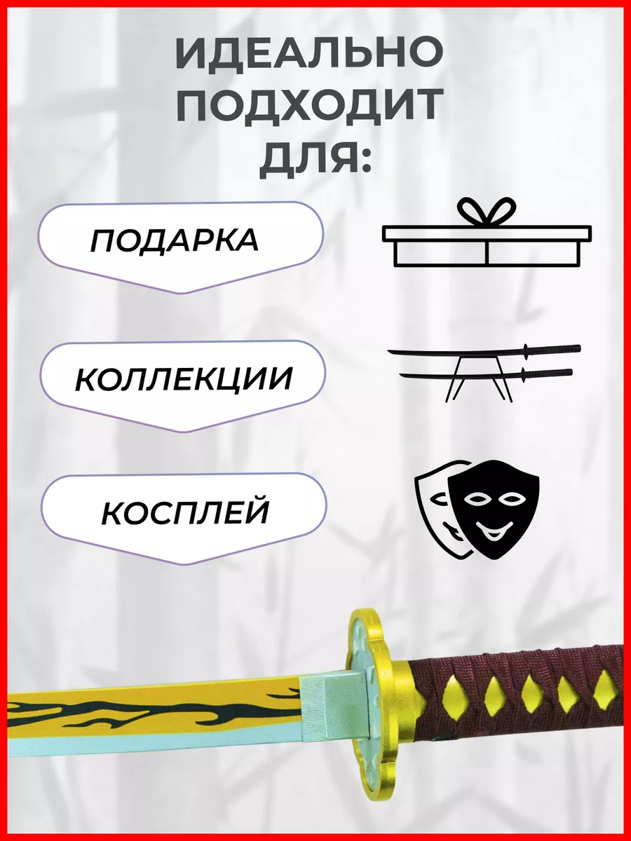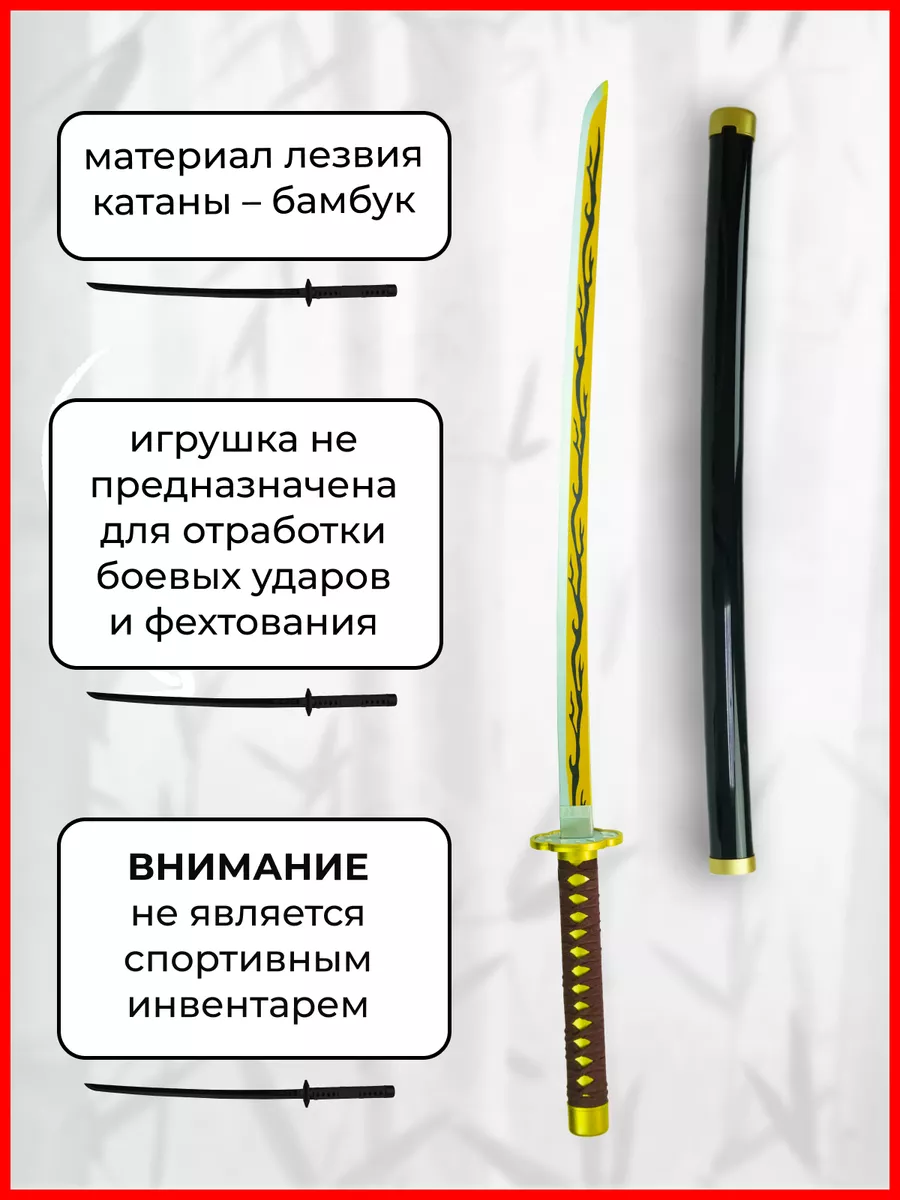 Деревянная катана меч игрушечная, клинок рассекающий демонов