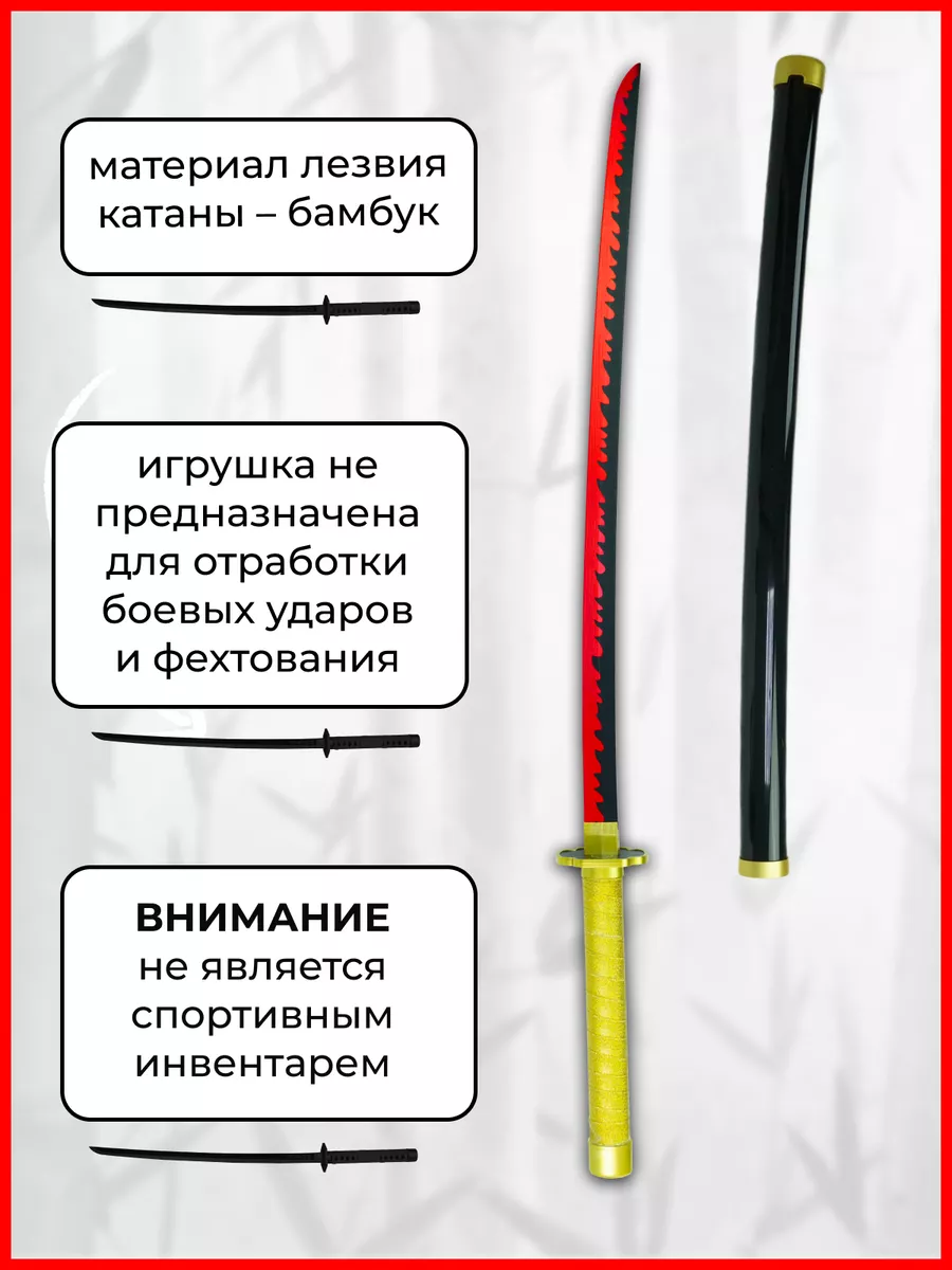 Деревянная катана меч игрушечная, клинок рассекающий демонов