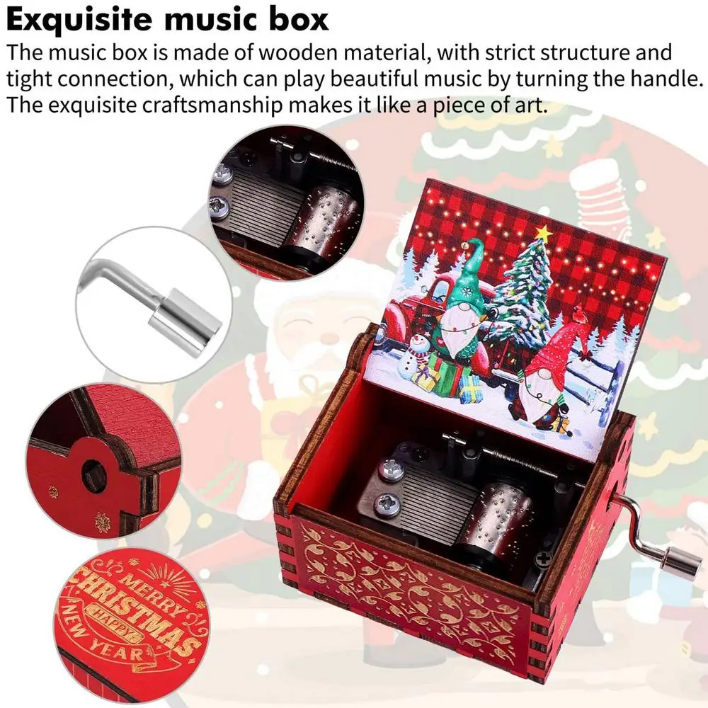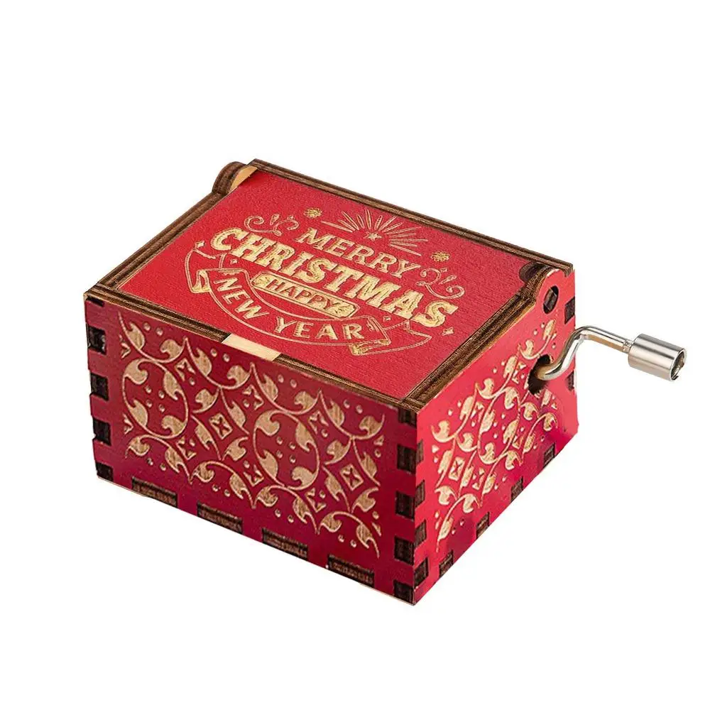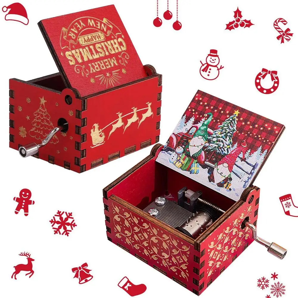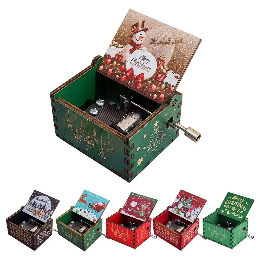 Деревянная музыкальная шкатулка с ручным заводом, винтажная Рождественская тема, музыкальная игрушка для дома, общежитий, гостиной, украшения спальни, новый год