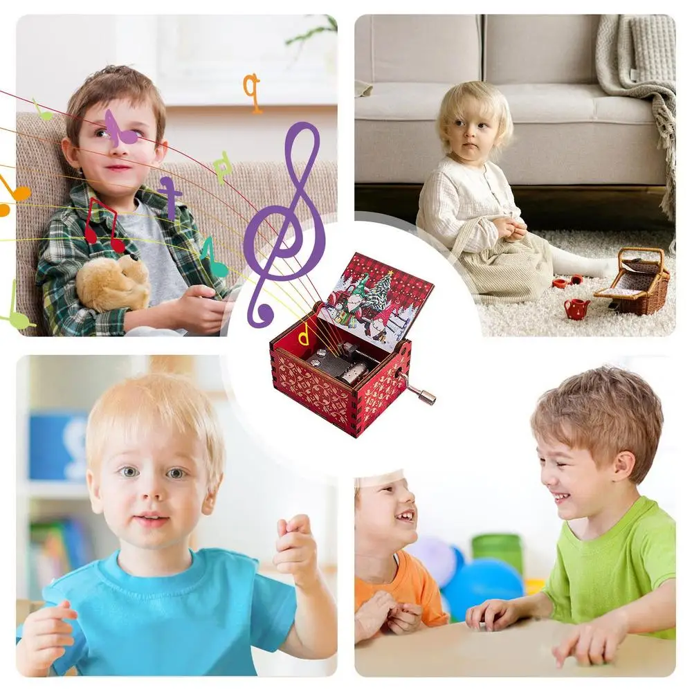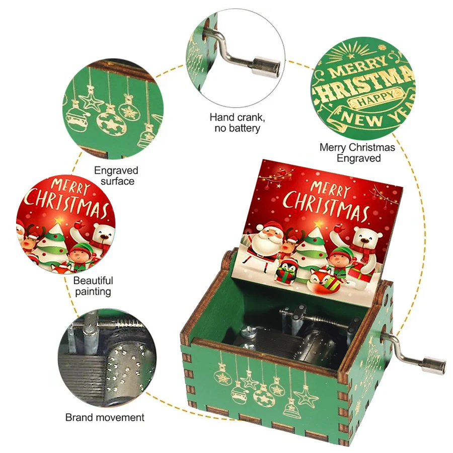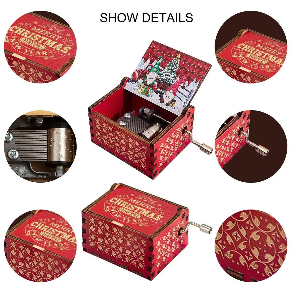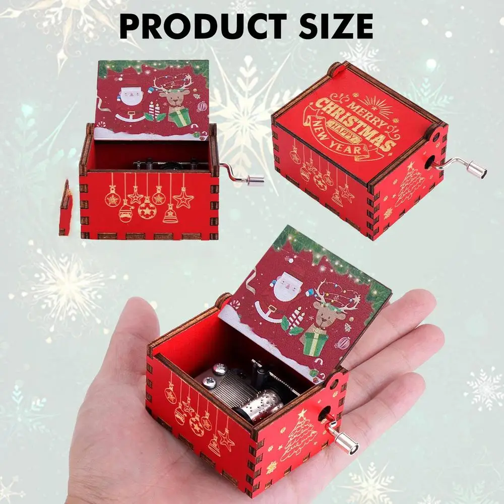 Деревянная музыкальная шкатулка с ручным заводом, винтажная Рождественская тема, музыкальная игрушка для дома, общежитий, гостиной, украшения спальни, новый год