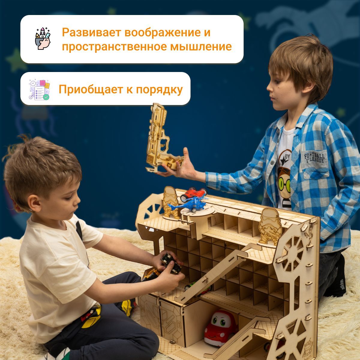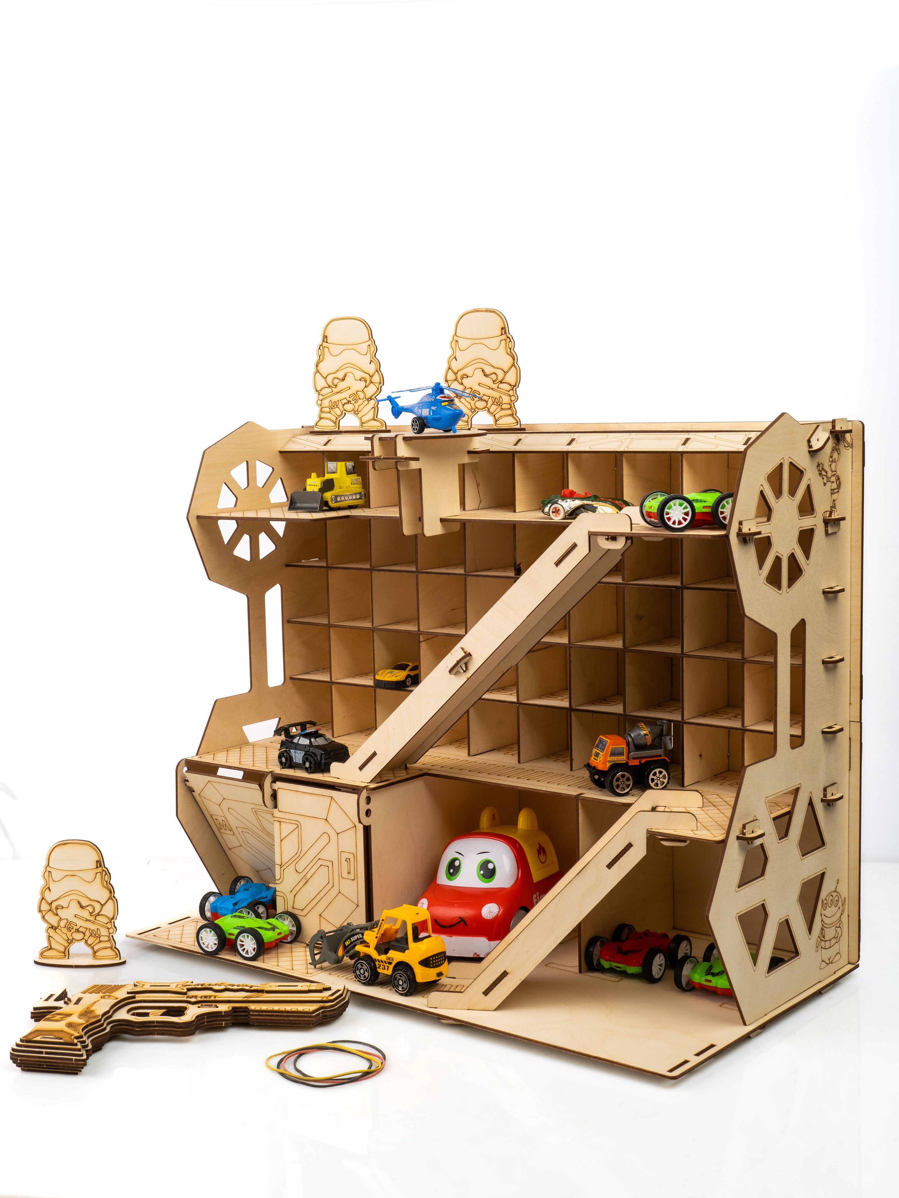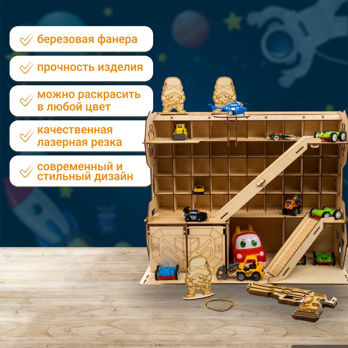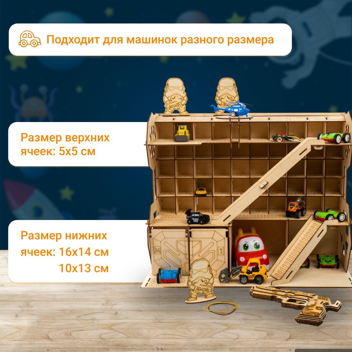 Деревянная парковка Гараж для машинок XL полка для игрушек подарок на день рождения ребенку