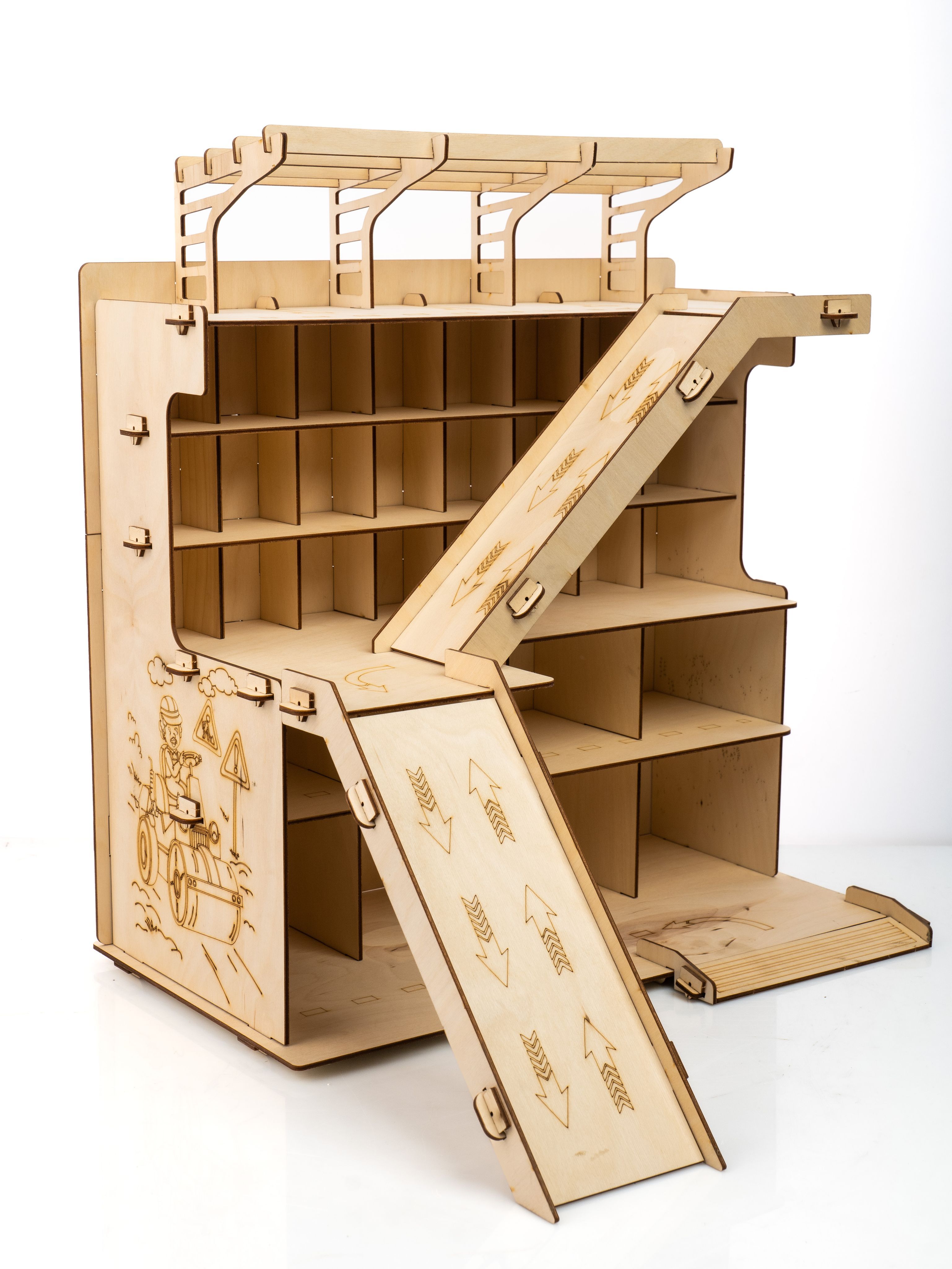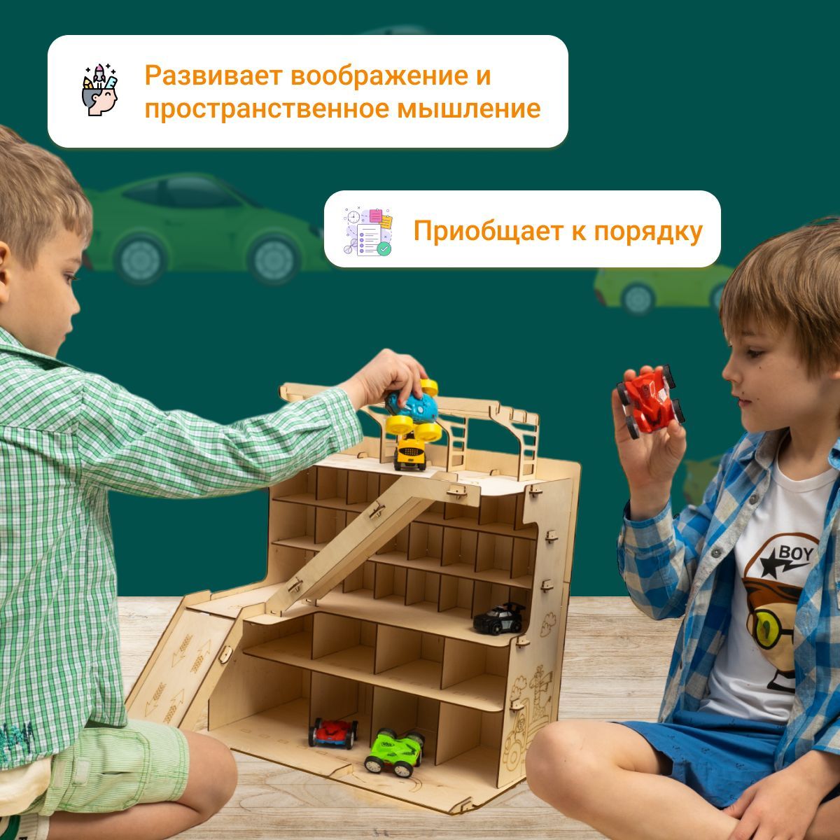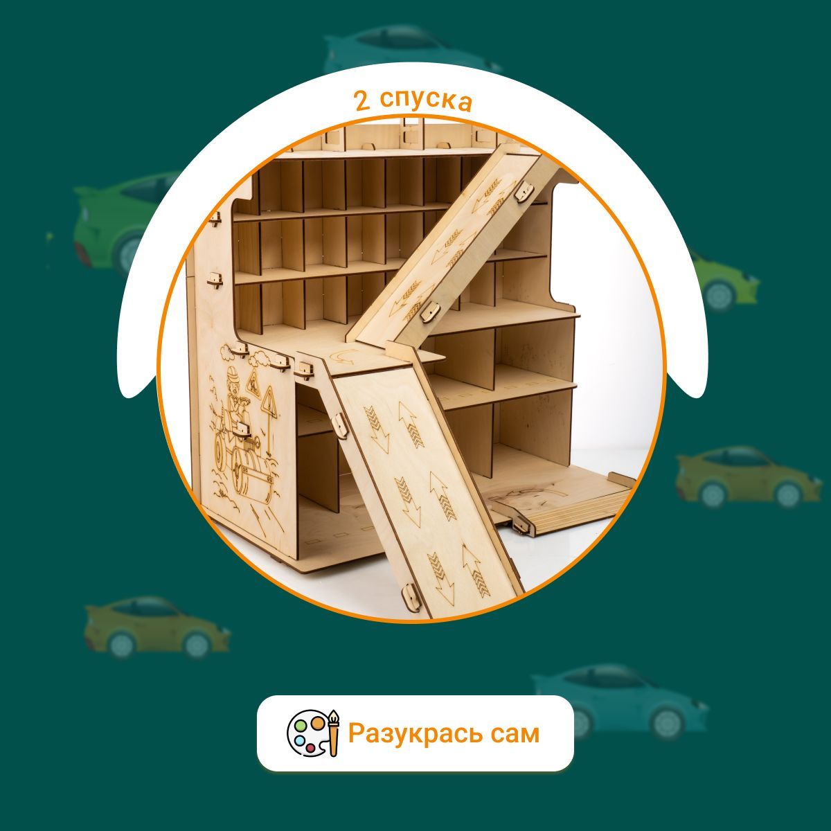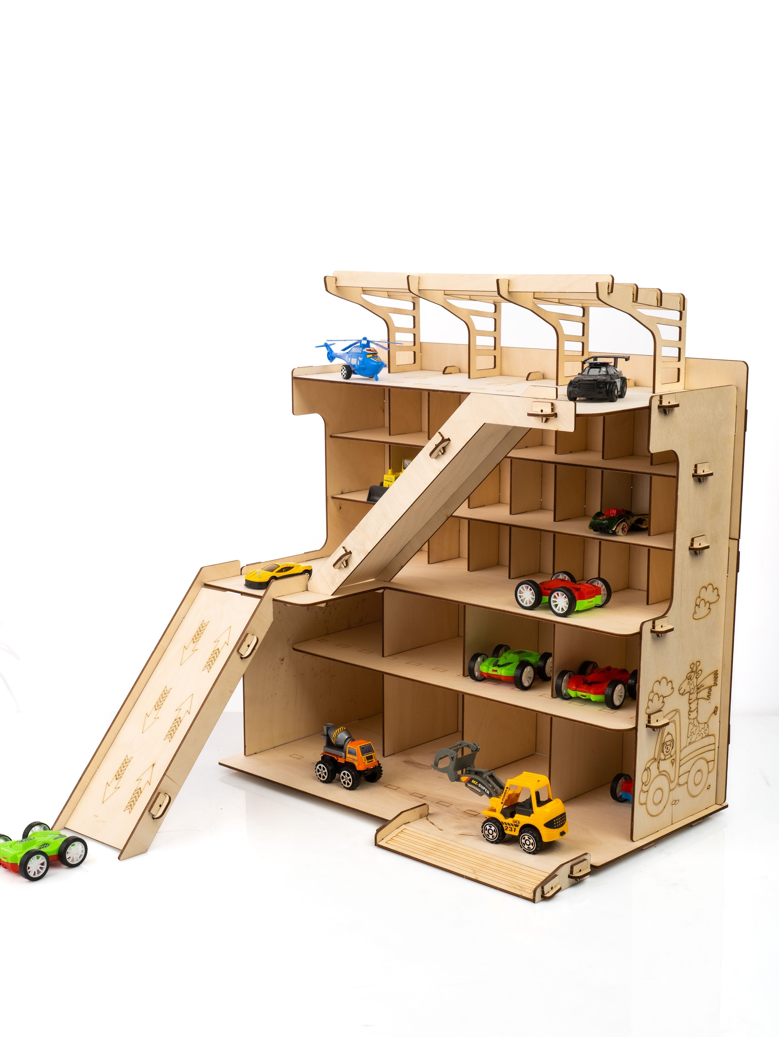 Описание: Многоуровневая парковка-это отличный подарок на день рождения Вашему ребенку. Паркинг для машин можно раскрасить красками, фломастерами, карандашами или мелками. Игрушечный гараж парковка с 2 горками, шлагбаумом вмещает огромное количество игрушечного транспорта. С новым набором "многоуровневая парковка" появится возможность создать свой собственный гараж и полностью погрузиться в мир игрушечных транспортных средств. Супер-автопаркинг станет настоящим чудом для маленьких мальчишек и их игровых коллекций машинок! Этот оригинальный комплекс представляет собой большой ящик с 6 уровнями для хранения дорожных знаков, поли, вертолетов, танков, самосвалов, автовозов, мотоциклов, и даже имеется горка и вертолетная площадка. Деревянная парковка - отличный способ развивать моторику, усидчивость, координацию, мышление и воображение ребенка. Такие настольные логические игры лего и развивающие игрушки помогут вашему ребенку стать умнее и научиться лучше ориентироваться в пространстве. Детские машины, тракторы, каталки, полицейские и пожарные машины, скорая помощь и робокар - все эти машинки можно разместить в автопарковке и наслаждаться дрифтом и гонками. Парковка детская - это идеальный подарок на день рождения, Новый Год или любой другой праздник. Оригинальный дизайн полки сделает его замечательным украшением детской комнаты. Парковка деревянная подойдет как для игры в домашних условиях, так и для игр на улице. Не упустите возможность порадовать своих детей новым подарочным игрушечным набором - деревянная парковка для машин. Покупайте сейчас автопарковку и дарите радость и счастье вашим детям!