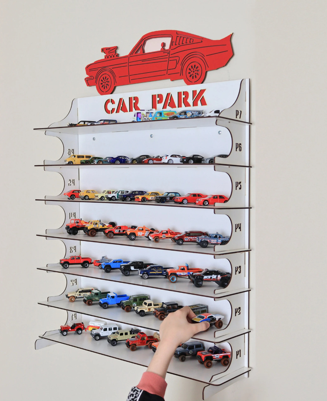 Деревянная полка для коллекции машинок 1:64 / Парковка, гараж, паркинг настенная для моделек автомобилей