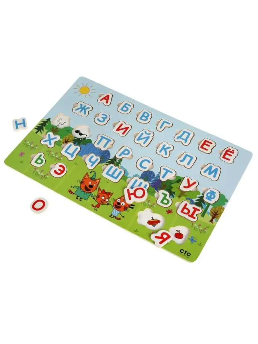 Деревянная рамка вкладыш для малышей Алфавит Три кота