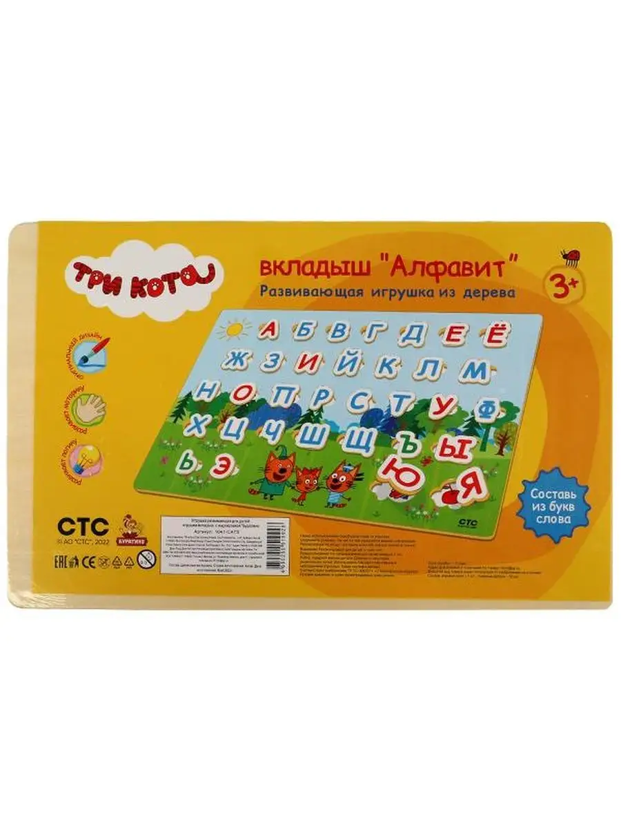 Комплектация Деревянная рамка вкладыш для малышей Алфавит; Три кота Азбука