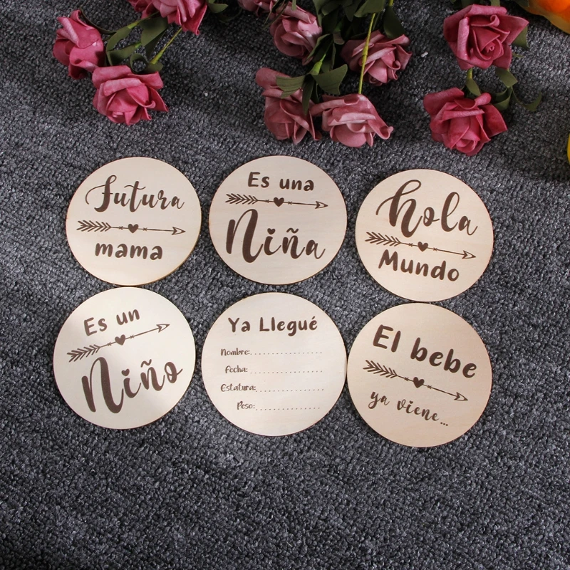 Деревянные двухсторонние открытки для новорожденных, 6 шт.