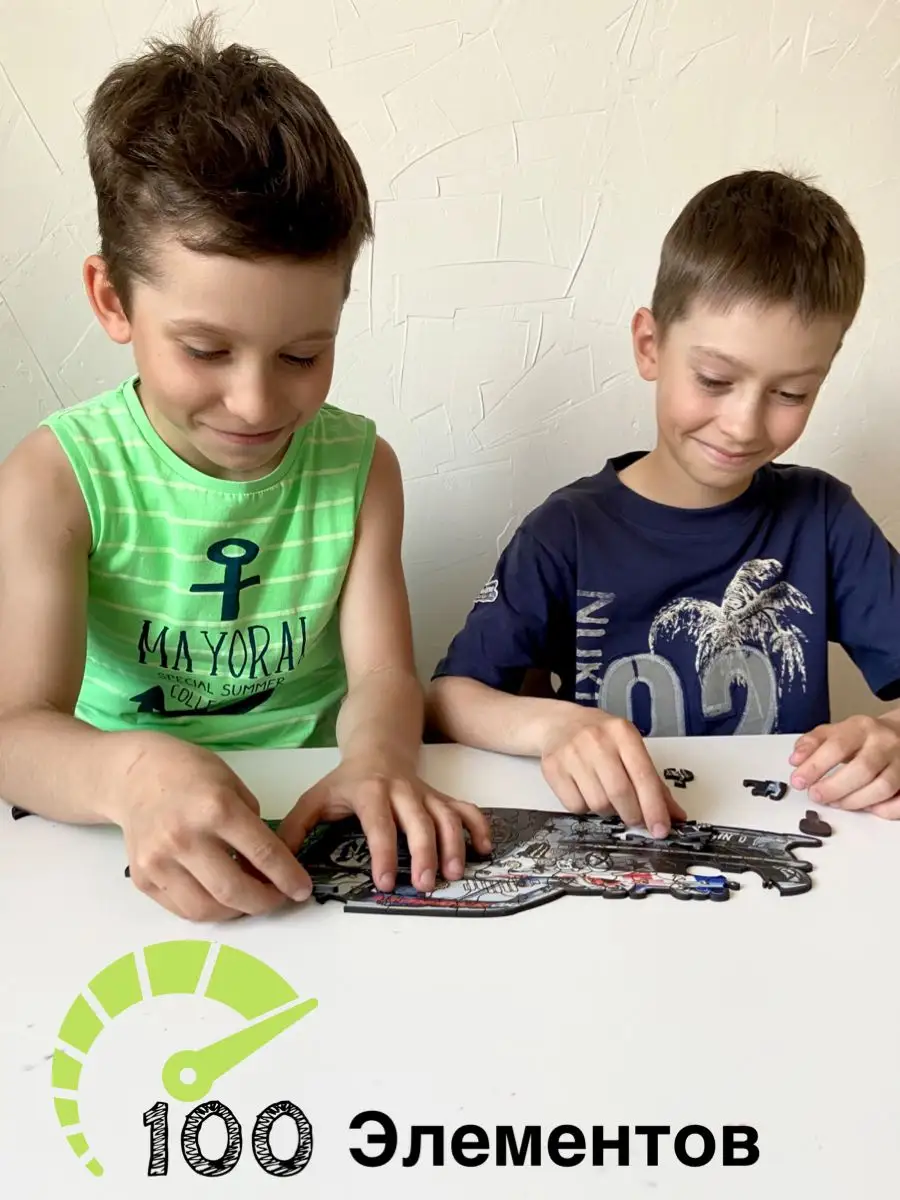 Описание: Деревянные пазлы с машинками - это настольная развивающая игра, головоломка для детей и взрослых. Состоит из неповторимых деревянных фигурных деталей, которые нужно сложить в определенное изображение - мозаика. Являются отличным средством развития когнитивных навыков у детей ,таких как логическое мышление, внимание, терпение и усидчивость, координация движений, а также помогают развивать мелкую моторику. Материал дерево из которого изготовлен пазл автомобиль, полностью безопасен. Игровой набор из фигурок имеет автомобильную тематику в 90,100,126 деталей. Сложность конструктора деревянного от двух часов в сборке. Фигурные пазлы из дерева вырезаются в форме различных фигур. Головоломка состоит из деталей машины, спецтехники и другого транспорта. Деревянные пазлы - это не только практичная игрушка, но и обучающая игра, которая отвлечет ребенка от гаджета, игра в дорогу. Пазлы объемные из дерева прочные, яркие и необычные, что делает игру более занимательной . Фигурные детали тачки и коробка пазлов изготовлены из дерева, гладкие, легко складываются. В 3д пазл из дерева 4 варианта сборки. Многие отмечают пазлы как сложные, интересные, необычные, в отличии от пазлов с животными. Не подходит для малышей, приобретают для детей от 4х лет до 6 лет для сборки с родителями и от 7 лет для самостоятельной сборки. Набор пазлов из фанеры может быть интересным развлечением для детей и взрослых, для тех, кто занят хобби, любит коллекционировать и антистрессом. Это прекрасный подарок мужчине ,мальчику, сыну, внуку на Новый год ,день рождения ,автолюбителю !Пазл машина станет сувениром в виде игрушки для мужчины. Аксессуар машина поднимет настроение любителям автомобилей независимо от возраста. Соберите свой деревянный гараж с пазлами Technics.Пазлы из фигурок деревянные могут быть прекрасным элементом декора в интерьере. Если вас пригласили на День рождения или в гости к друзьям-прихватите с собой подарочную коробку пазлов из дерева. Приятного времяпрепровождения!