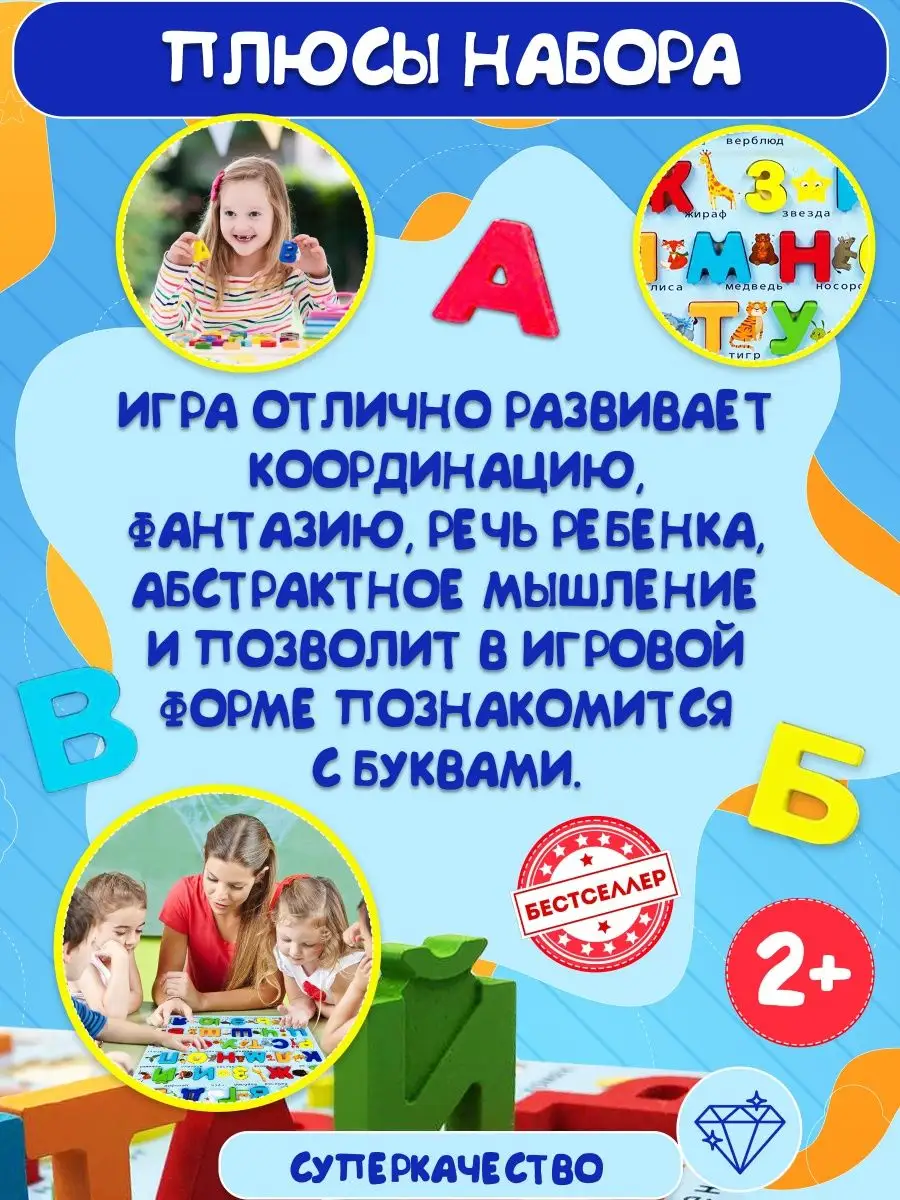 Деревянные игрушки развивающие. Алфавит, цвета. Обучающий.