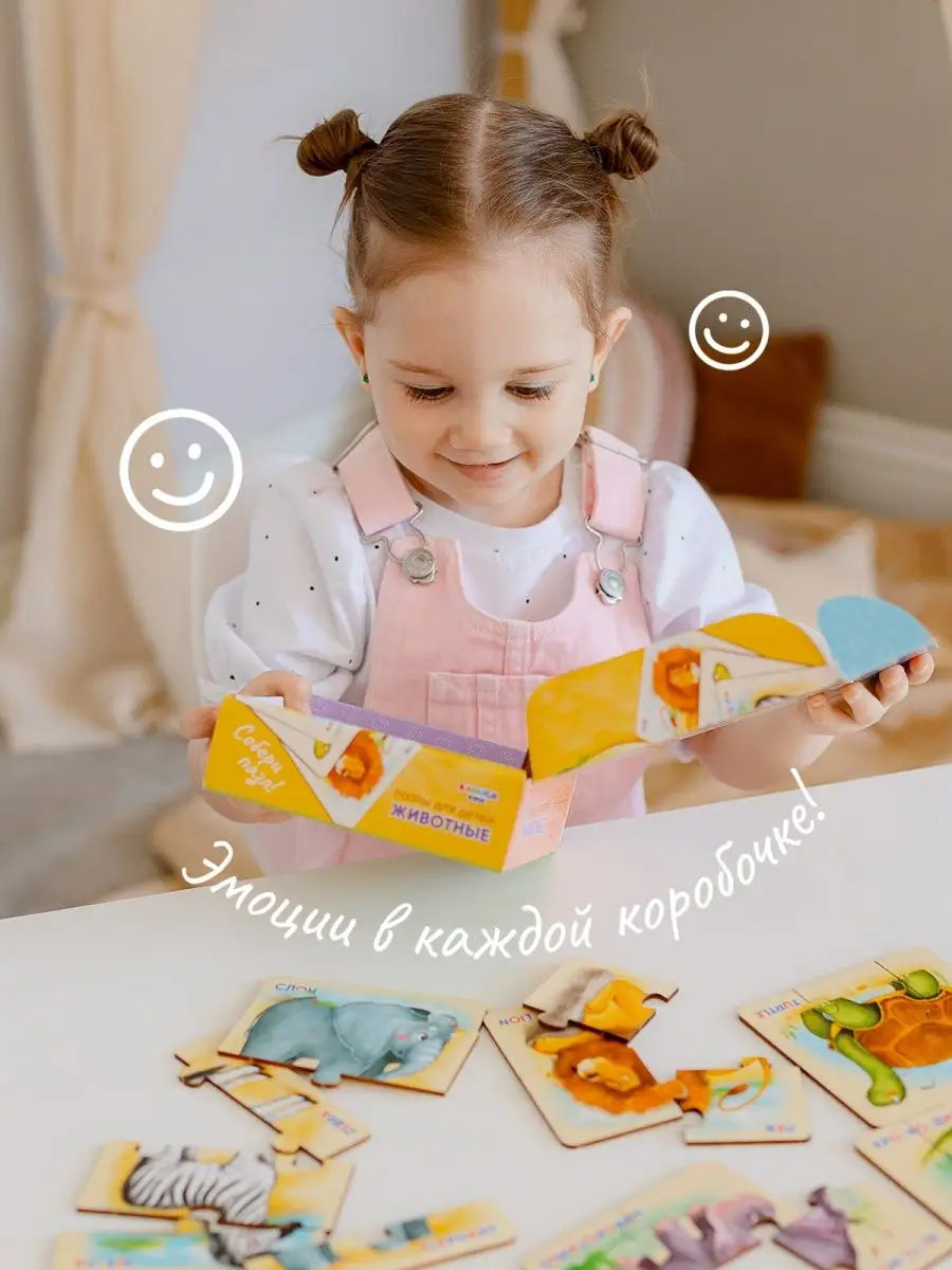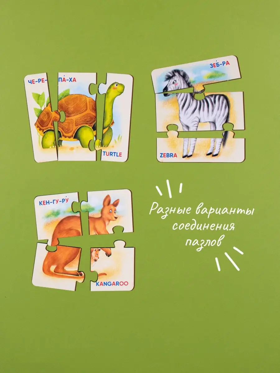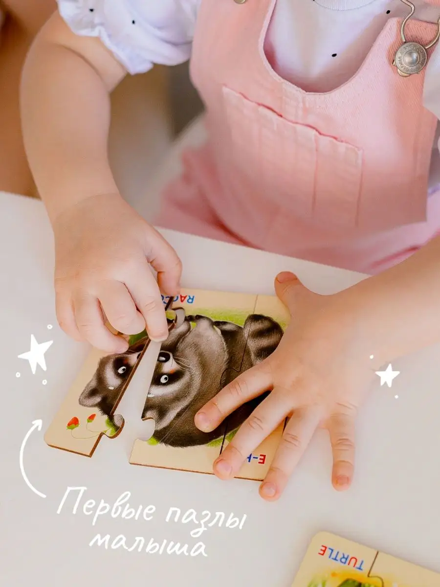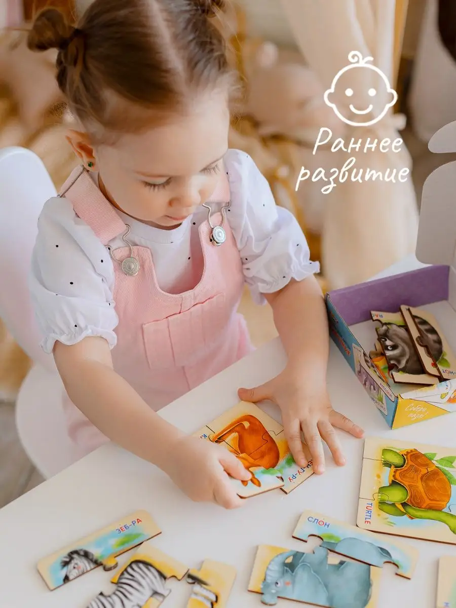 Описание: Развивающие игрушки для малышей пазлы "Животные Африки" от Raduga Kids. Набор пазлов состоит из 9 ярких иллюстраций, 30 деревянных деталей. Игровой набор прекрасно подходит для первого знакомства ребенка с пазлами. Фигурные пазлы способствуют формированию навыка соединения целого изображения из трех-четырех элементов. Игра с этими пазлами станет настоящим удовольствием для вашего ребенка. Макси пазлы имеют удобный размер, идеально подходящий для детской руки. Тактильные пазлы из дерева береза безопасны для детей от 1 года. Ребёнок не сможет порвать/помять детали в отличии от картонных. Пазлы вкладыши для малышей крупные для девочек и мальчиков развивают мелкую моторику рук, тренирует усидчивость, помогает развивать зрительное восприятие, тактильные функции, зрительную координацию, логическое и пространственное мышление. Развивающие игрушки от года по методике Монтессори развивают память и расширяют словарный запас. 1. Бейби пазлы для малышей - интересный подарок, знакомящий с цветами и понятиями, такими как часть/целое/назначение/больше-меньше. 2. Пазлы большие с перемешанными деталями развивают логическое мышление и мелкую моторику. Игра мемори "Найди лишнее" помогает определить, какое животное не принадлежит к африканской фауне. Развивает наблюдательность и логическое мышление. (Подсказка: это енот!) 3. Соберите пазлы вместе с ребенком, рассказывая о каждом животном и его особенностях. Обсудите, где они живут, что едят и какие звуки издают. Затем позвольте малышу самостоятельно собирать пазлы и отвечать на вопросы о месте обитания, пищевых привычках и звуках животных. Дарите только самые полезные подарки, которые будут развивать ваших детей и доставлять им удовольствие!