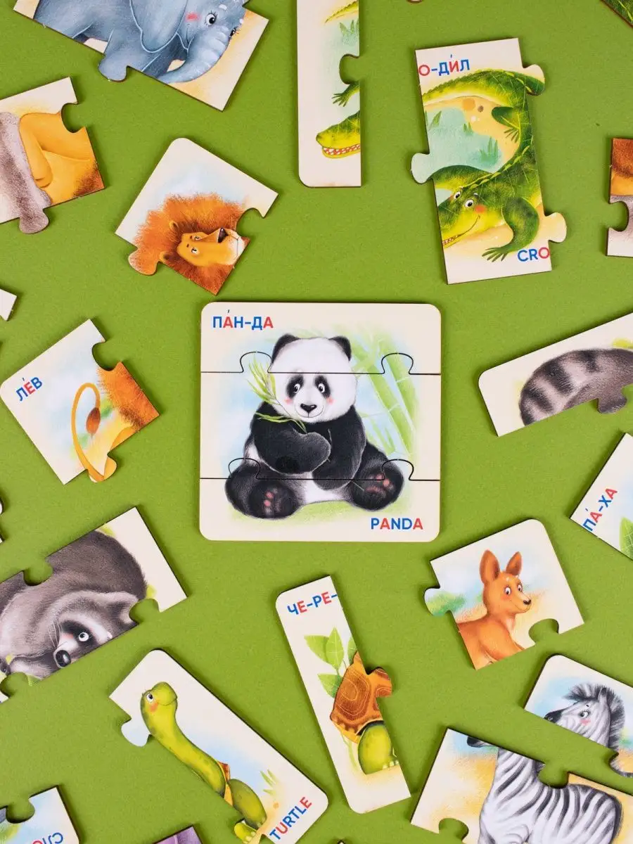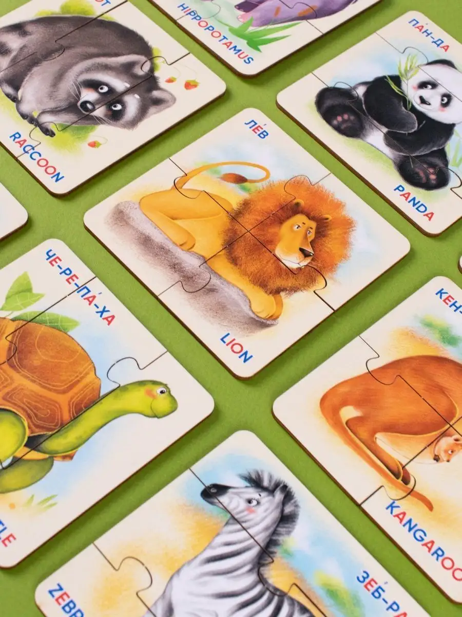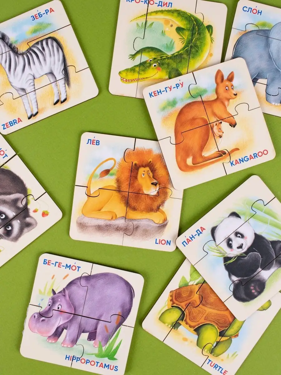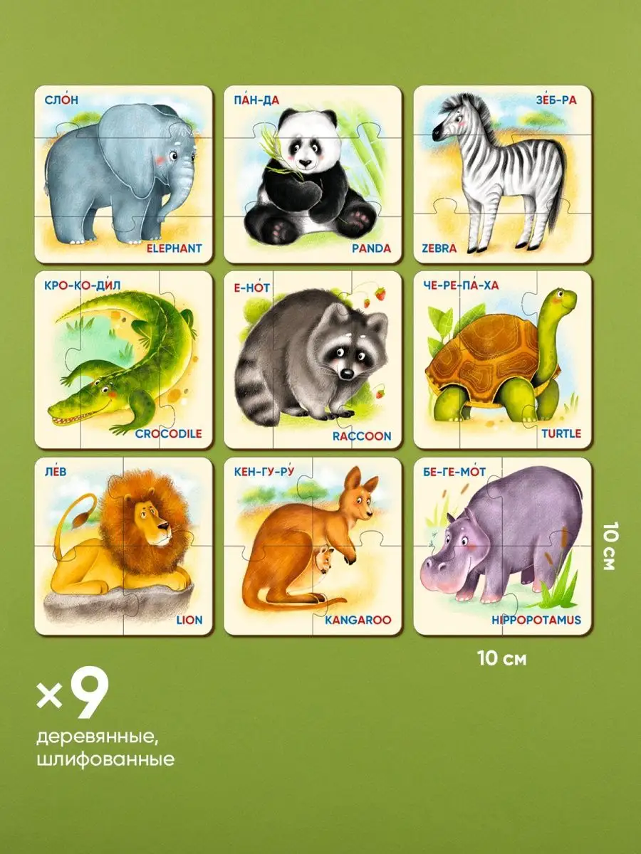Описание: Развивающие игрушки для малышей пазлы "Животные Африки" от Raduga Kids. Набор пазлов состоит из 9 ярких иллюстраций, 30 деревянных деталей. Игровой набор прекрасно подходит для первого знакомства ребенка с пазлами. Фигурные пазлы способствуют формированию навыка соединения целого изображения из трех-четырех элементов. Игра с этими пазлами станет настоящим удовольствием для вашего ребенка. Макси пазлы имеют удобный размер, идеально подходящий для детской руки. Тактильные пазлы из дерева береза безопасны для детей от 1 года. Ребёнок не сможет порвать/помять детали в отличии от картонных. Пазлы вкладыши для малышей крупные для девочек и мальчиков развивают мелкую моторику рук, тренирует усидчивость, помогает развивать зрительное восприятие, тактильные функции, зрительную координацию, логическое и пространственное мышление. Развивающие игрушки от года по методике Монтессори развивают память и расширяют словарный запас. 1. Бейби пазлы для малышей - интересный подарок, знакомящий с цветами и понятиями, такими как часть/целое/назначение/больше-меньше. 2. Пазлы большие с перемешанными деталями развивают логическое мышление и мелкую моторику. Игра мемори "Найди лишнее" помогает определить, какое животное не принадлежит к африканской фауне. Развивает наблюдательность и логическое мышление. (Подсказка: это енот!) 3. Соберите пазлы вместе с ребенком, рассказывая о каждом животном и его особенностях. Обсудите, где они живут, что едят и какие звуки издают. Затем позвольте малышу самостоятельно собирать пазлы и отвечать на вопросы о месте обитания, пищевых привычках и звуках животных. Дарите только самые полезные подарки, которые будут развивать ваших детей и доставлять им удовольствие!