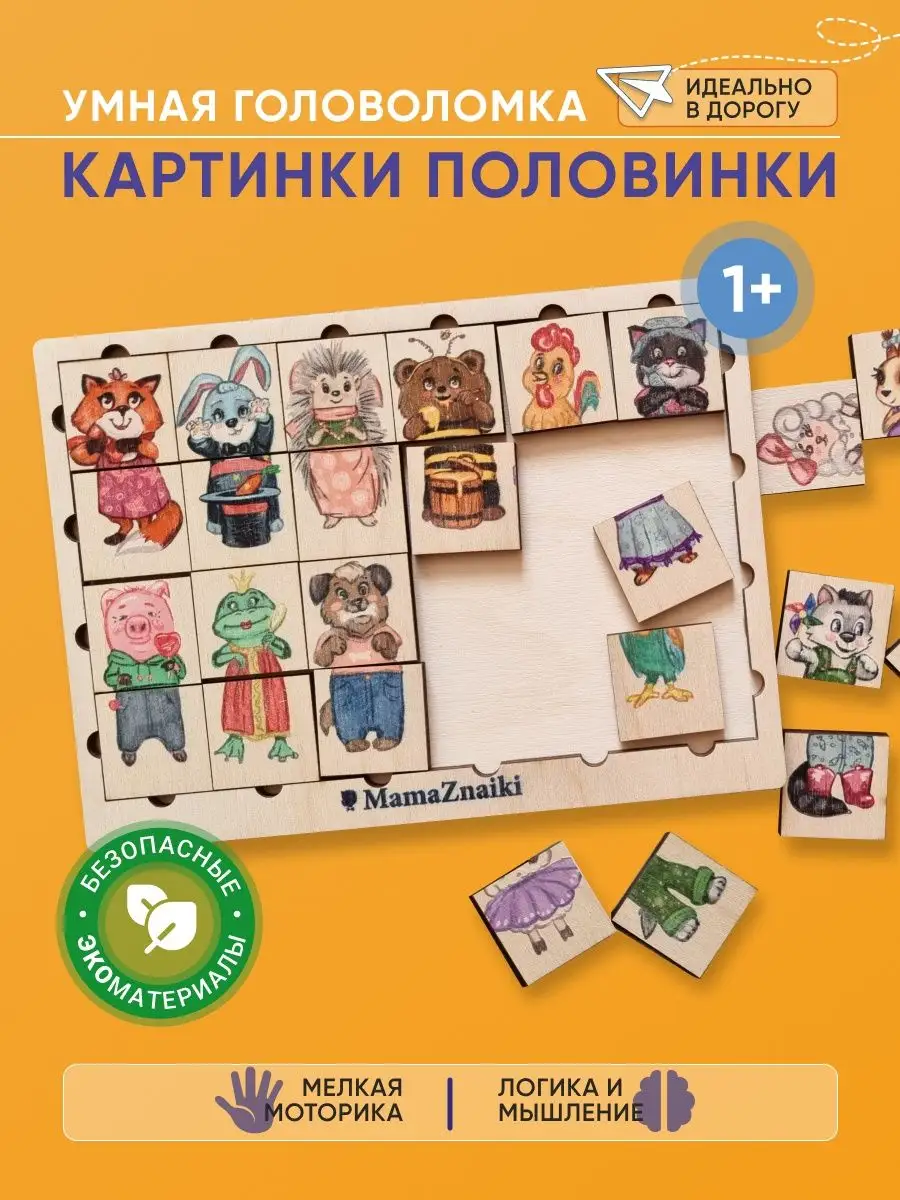 Деревянные пазлы картинки половинки