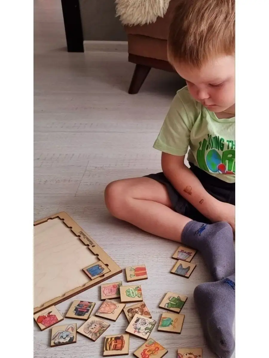 Комплектация Деревянный планшет с рамкой; Рамка-вкладыш; 24 картинки половинки