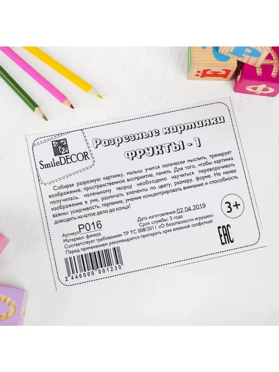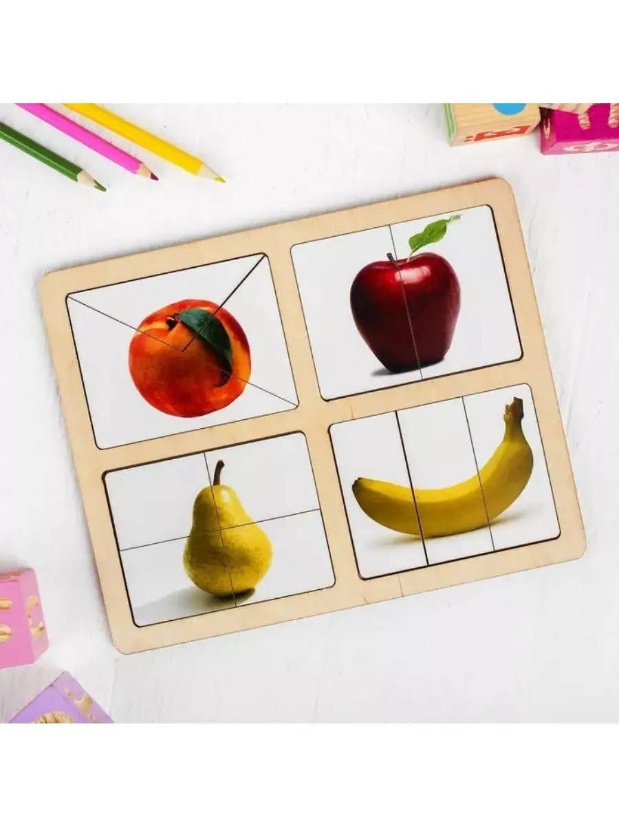 Деревянные разрезные картинки "Фрукты 1", пазл для малышей