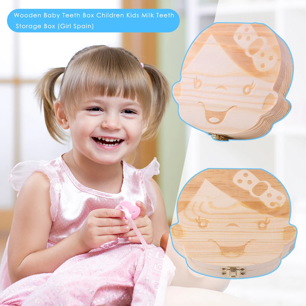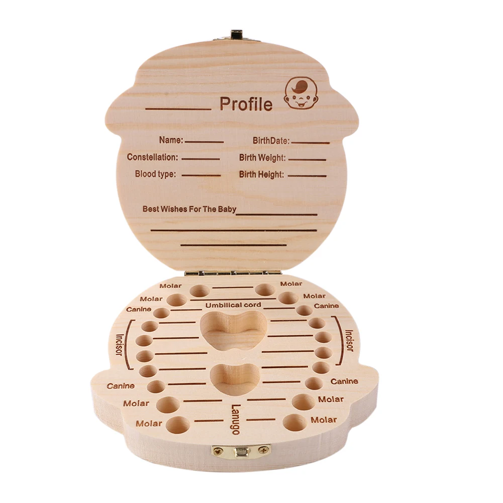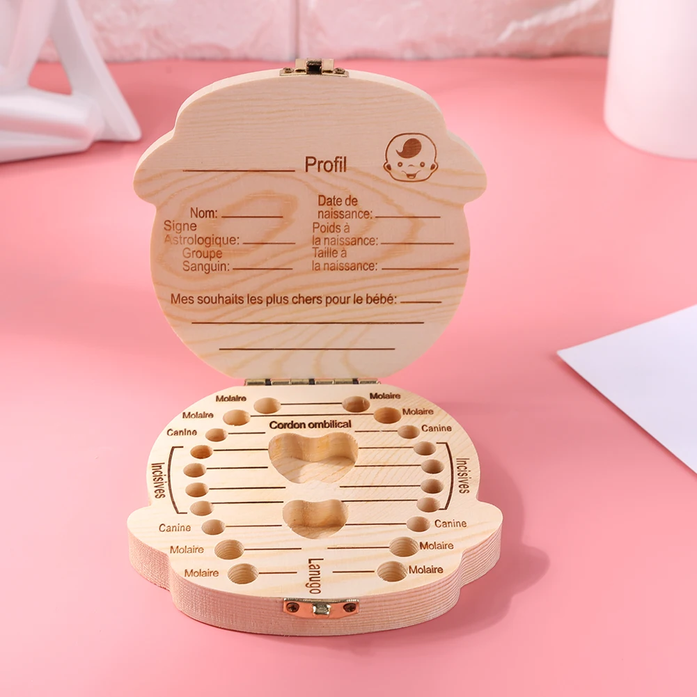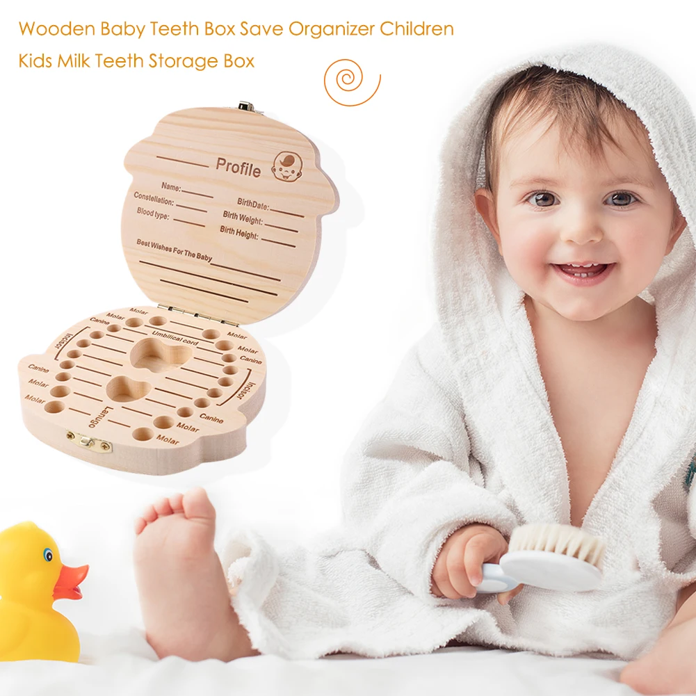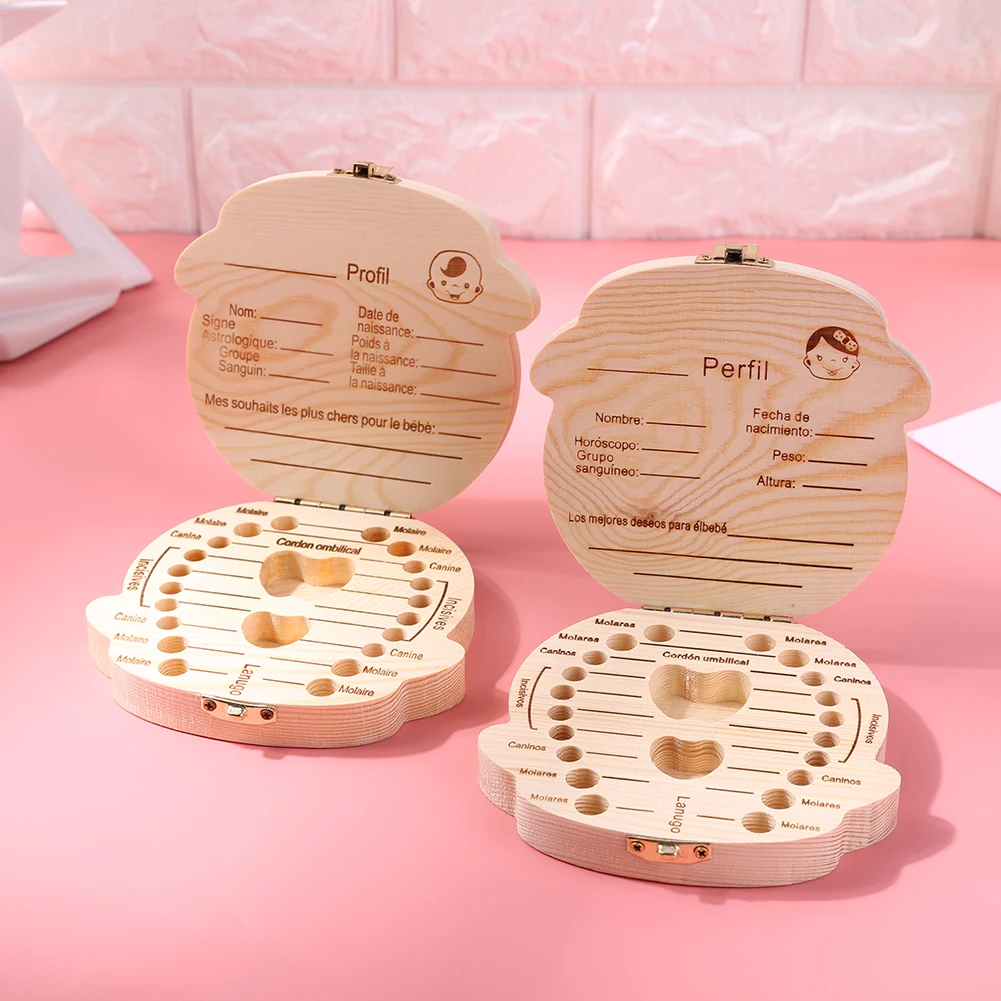 Деревянный Детский органайзер для зубов, английский, испанский, немецкий, французский, детский, для хранения молочных зубов, чехол для хранения зубов