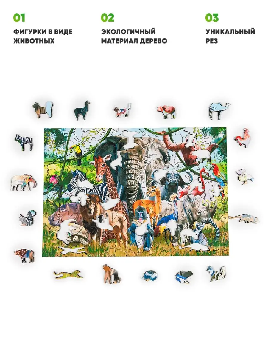 Деревянный пазл для детей и взрослых Животные Африки