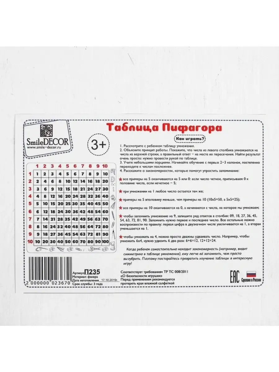 Деревянный пазл-головоломка Таблица Пифагора, учимся считать