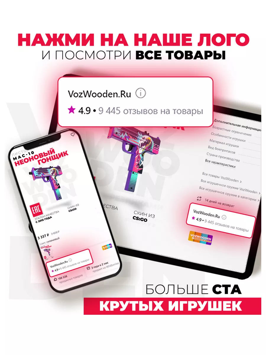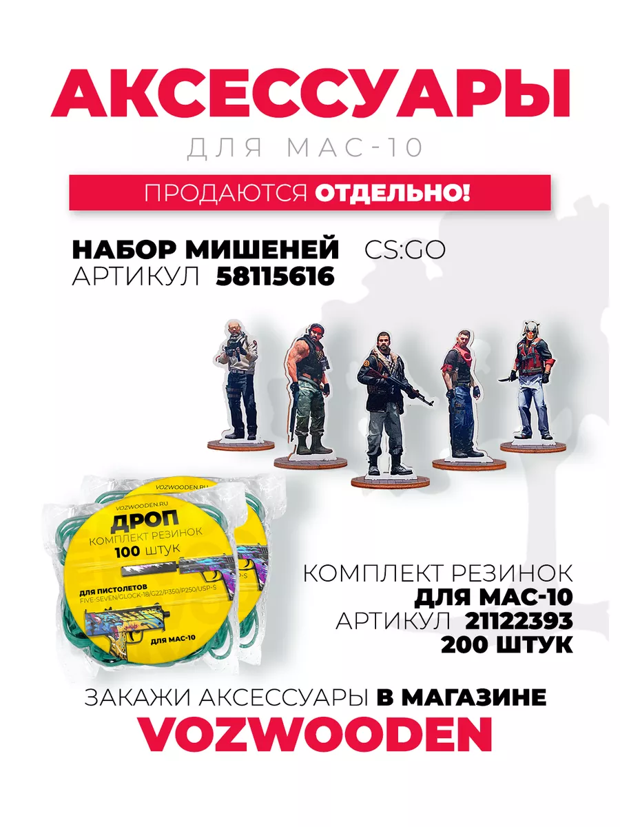 Деревянный пистолет-пулемет Mac-10 CS GO