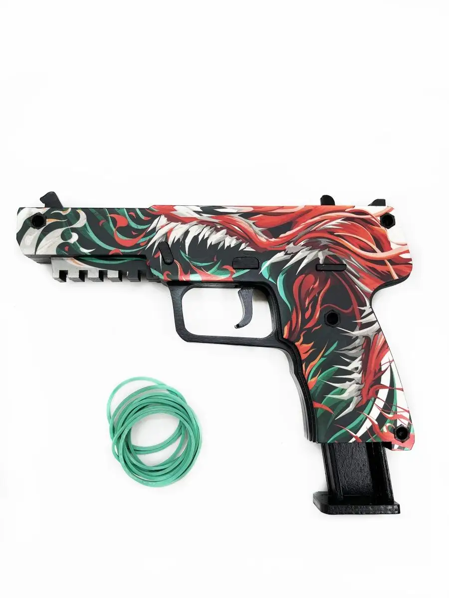 Деревянный пистолет USP резинкострел с магазином