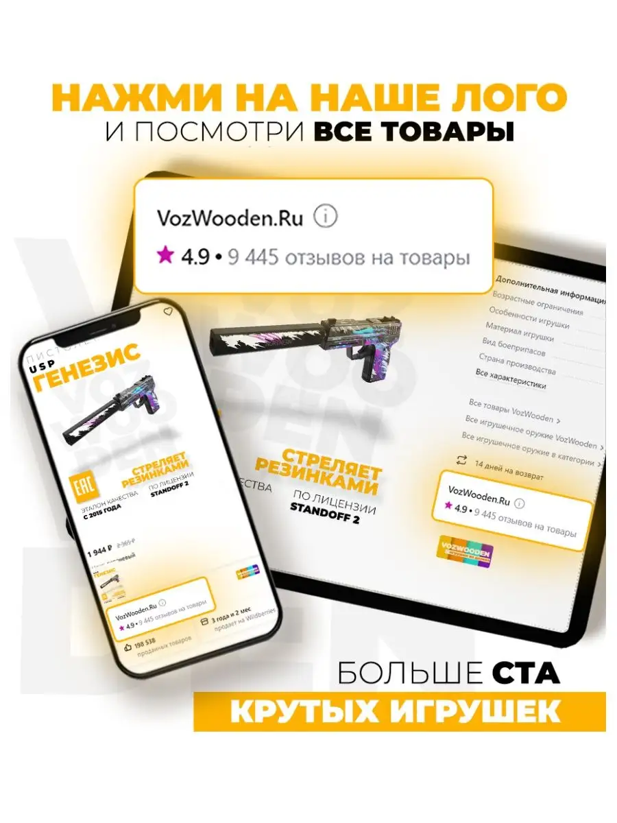 Деревянный пистолет ЮСП Генезис резинкострел из Standoff 2