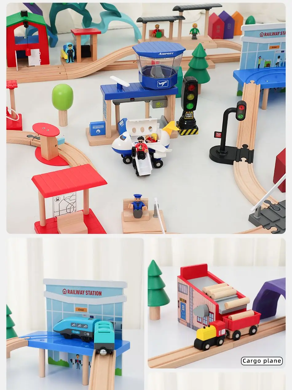Деревянный поезд трек универсальная сцена расширение аксессуары Подходит для фирменного деревянного железнодорожного трека набор детские развивающие игрушки