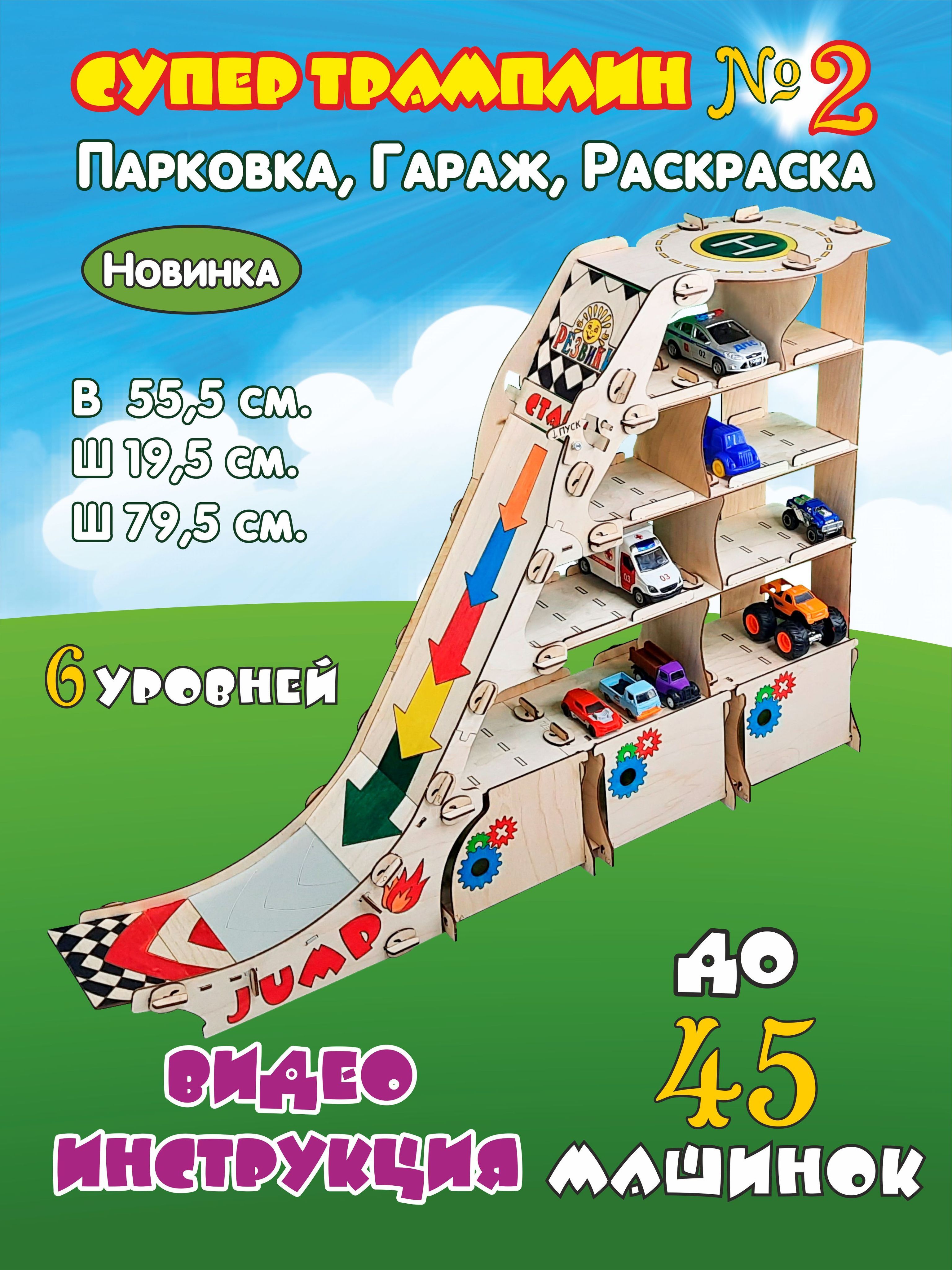 Описание: Развивающая игрушка, Вместительная Парковка, Трамплин, Гараж, Раскраска! Отличный подарок!