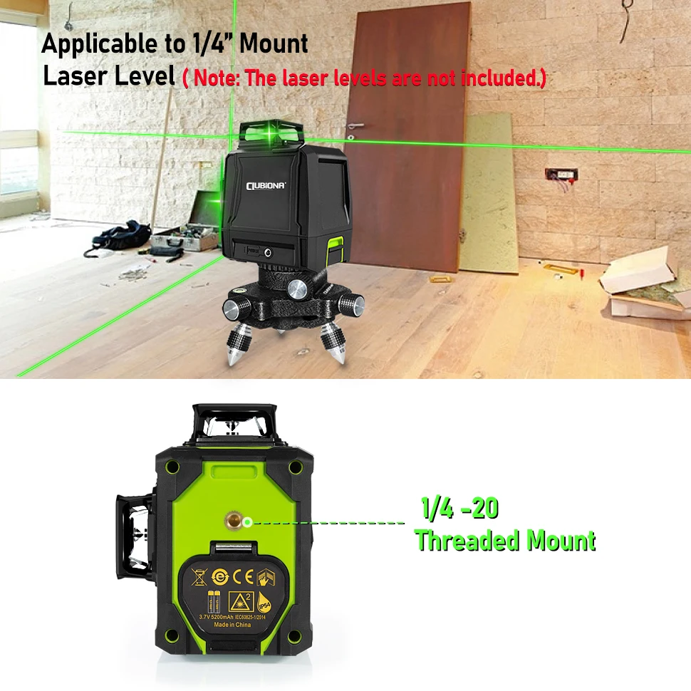 Держатель CLUBIONA из алюминиевого сплава для точной настройки на 360 °, поворотная основа, штатив с адаптером, кронштейн для резьбовых лазерных уровней 1/4 дюйма