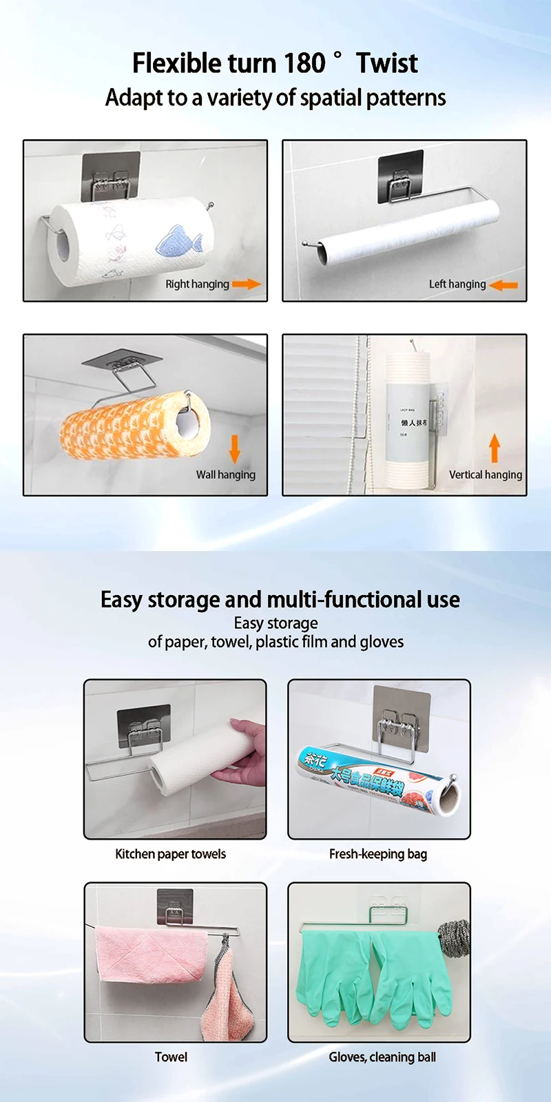 Держатель для бумажных полотенец Клейкая стойка для туалетной бумаги Крючок Вешалка для полотенец в рулонах для салфеток Домашний органайзер для хранения Кухня Аксессуары для ванной комнаты