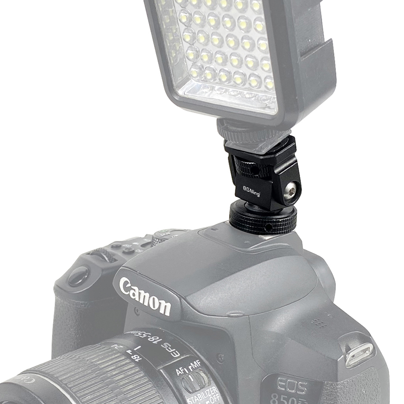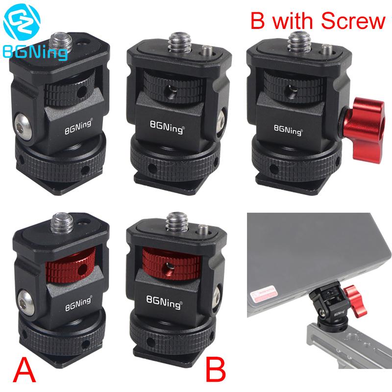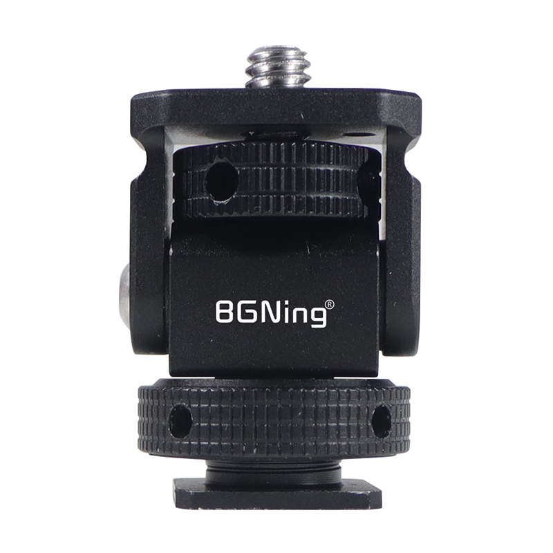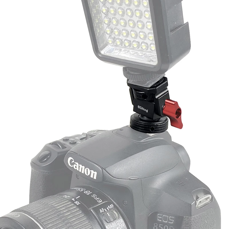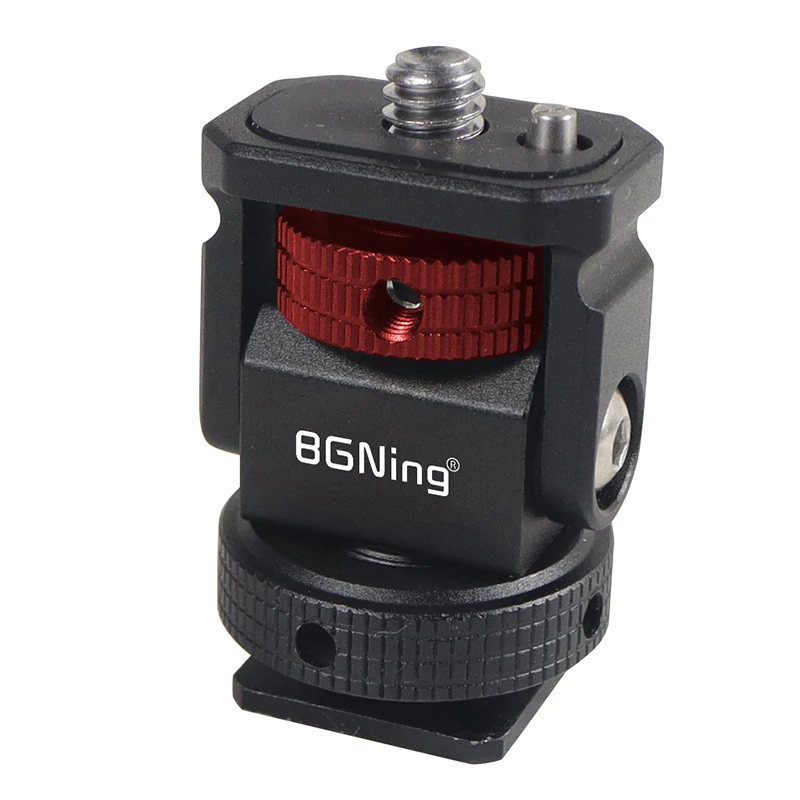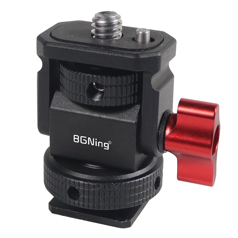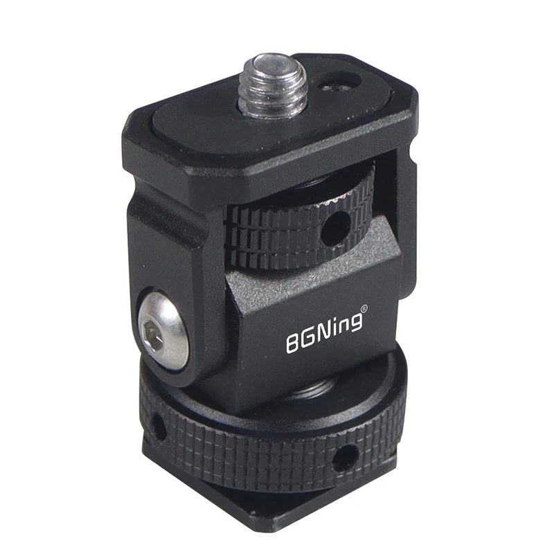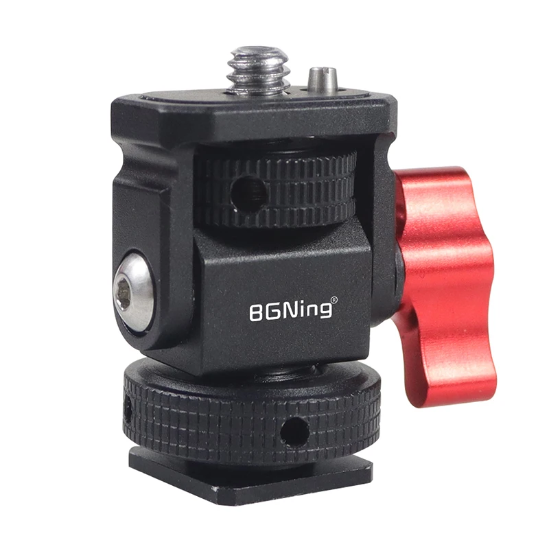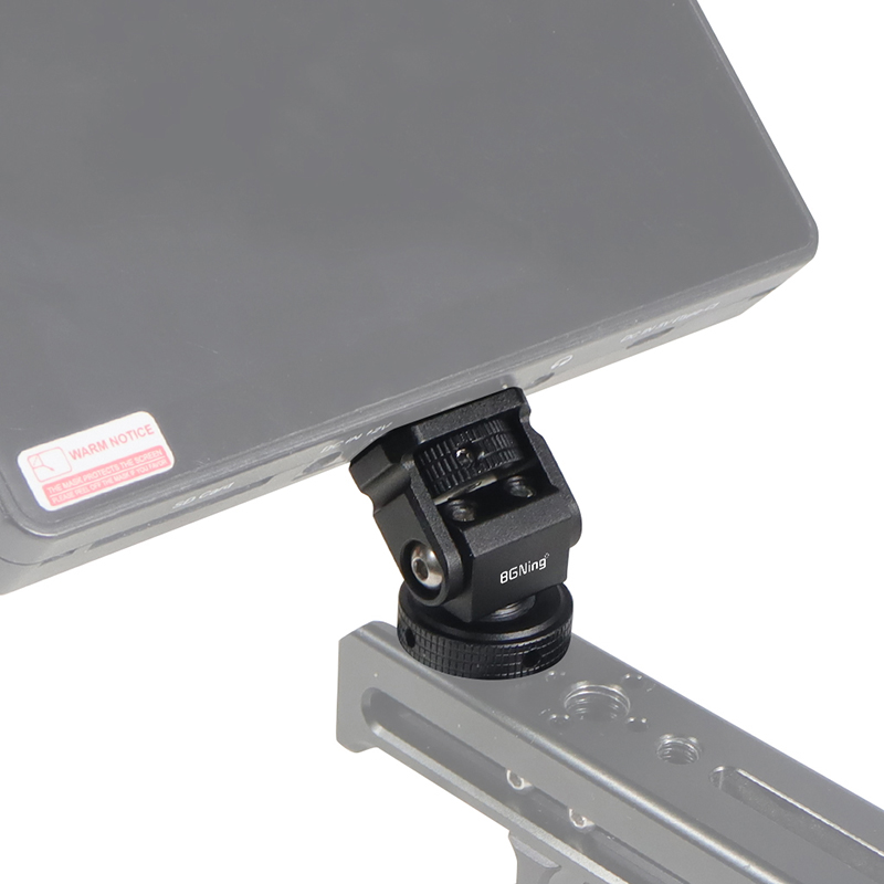 Новое регулируемое поворотное и наклонное крепление для монитора с креплением для холодного башмака предназначено для удержания монитора на верхней части камеры или другой системы крепления с помощью адаптера для холодного башмака. Он оснащен винтом 1/4 "-20" сверху для монитора, светильник или микрофона. Держатель позволяет поворачиваться 360 ° вбок и наклоняться 180 ° со свободным упором в любом положении. Дно с 3/8 "резьбовым отверстием может быть установлено и соединено с 3/8" винтовыми устройствами или 1/4 "винтовыми устройствами с преобразователем. Затяжка каждой оси регулируется с помощью шестигранного ключа. Мини-размер, легкий вес всего 33 г. Крепление монитора изготовлена из алюминия, обработанного на станке с ЧПУ, и может поддерживать монитор от 5 до 7 дюймов весом до 2,5 кг. Поворотное и наклонное крепление имеет защитную резиновую прокладку сверху и включает шестигранный ключ для затягивания креплений для дополнительной безопасности.