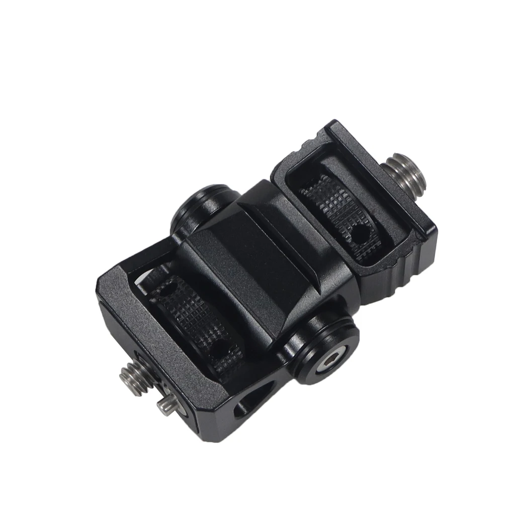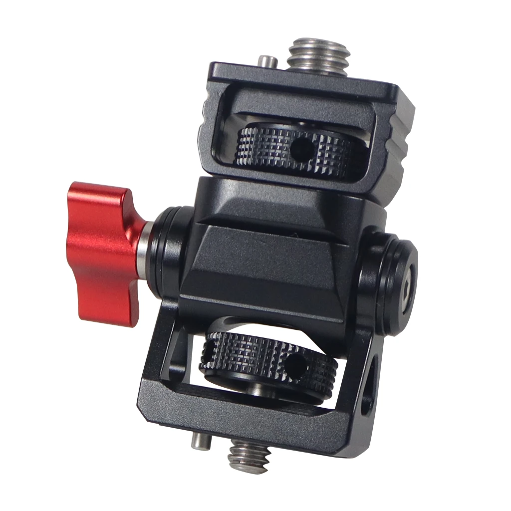 Новое поворотное и наклонное регулируемое крепление для монитора с двумя головками с контактами ARRI, предназначено для удержания вашего монитора на верхней части камеры или другой монтажной системы с помощью винтовой резьбы 1/4 или 3/8. Он оснащен винтом 1/4-20 на верхней части для монитора, света или микрофона. Держатель позволяет поворачивать на 360 ° вбок и наклонять на 180 ° с помощью свободного стопа в любом положении. Герметичность каждой оси регулируется с помощью шестигранного ключа. Крепление монитора изготовлено на станке с ЧПУ из алюминия и может поддерживать 5 "~ 7" монитор до 2 кг. Шарнирное и наклонное крепление имеет защитную резиновую прокладку сверху и включает в себя шестигранный ключ для затягивания креплений для обеспечения дополнительной безопасности.