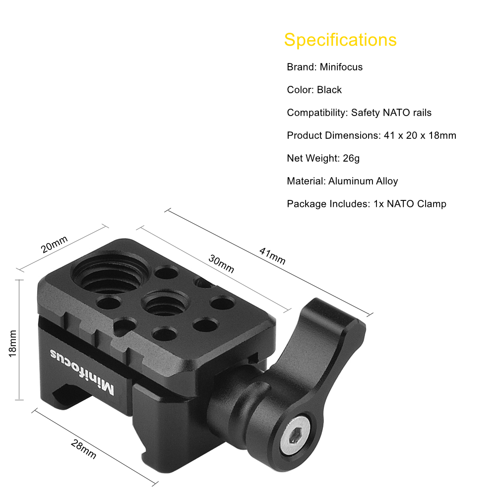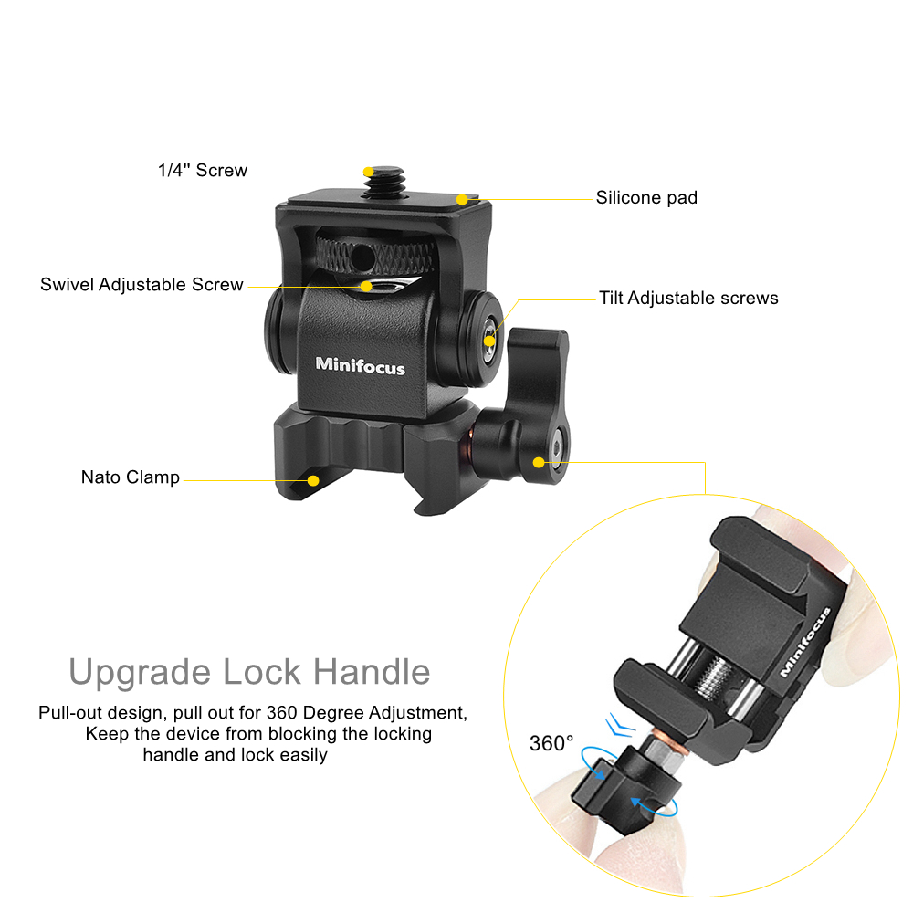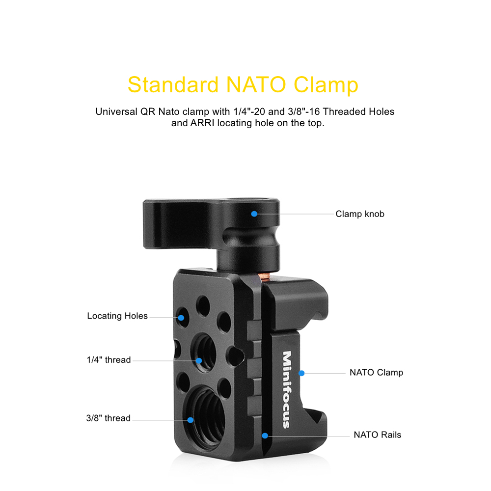 Быстроразъемное крепление для монитора Minifocus Регулируемый на 360 ° NATO рельсовый зажим для монитора для клетки камеры Аксессуары для видеосъемки