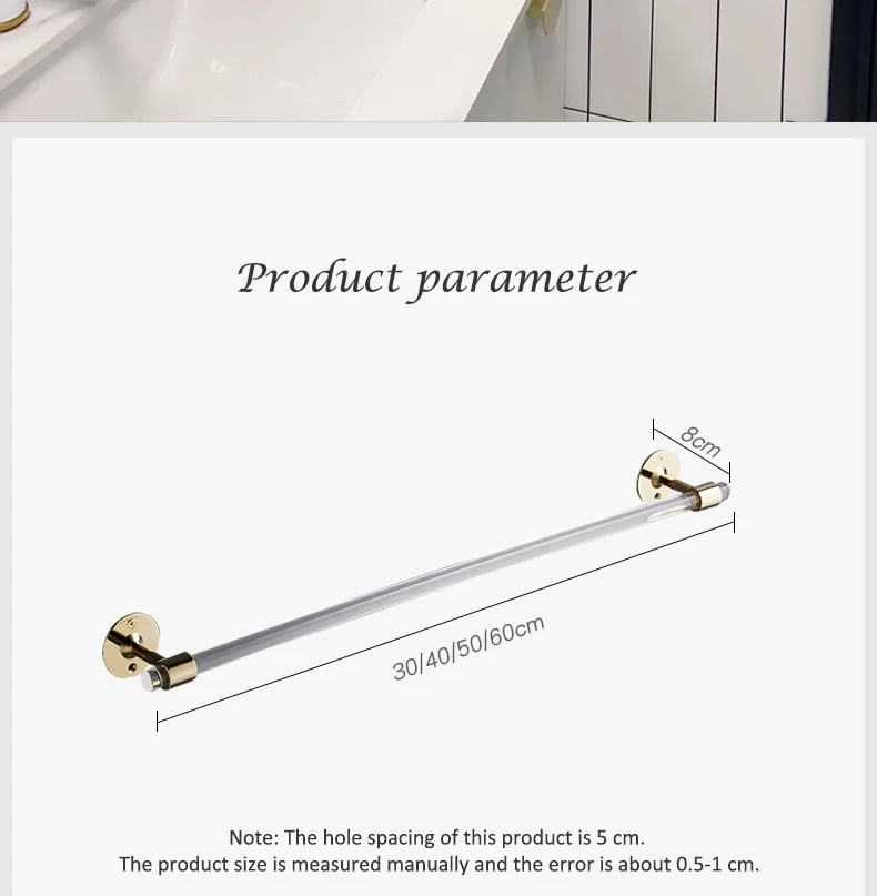 Держатель для полотенец из акрила и латуни, 20/30/40/50 см