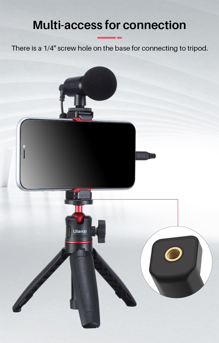 Ulanzi ST-19 Мини-держатель для телефона Зажим для смартфона с креплением для холодного башмака Отверстие для винта 1/4 дюйма для штатива Live Микрофон Светодиодная подсветка