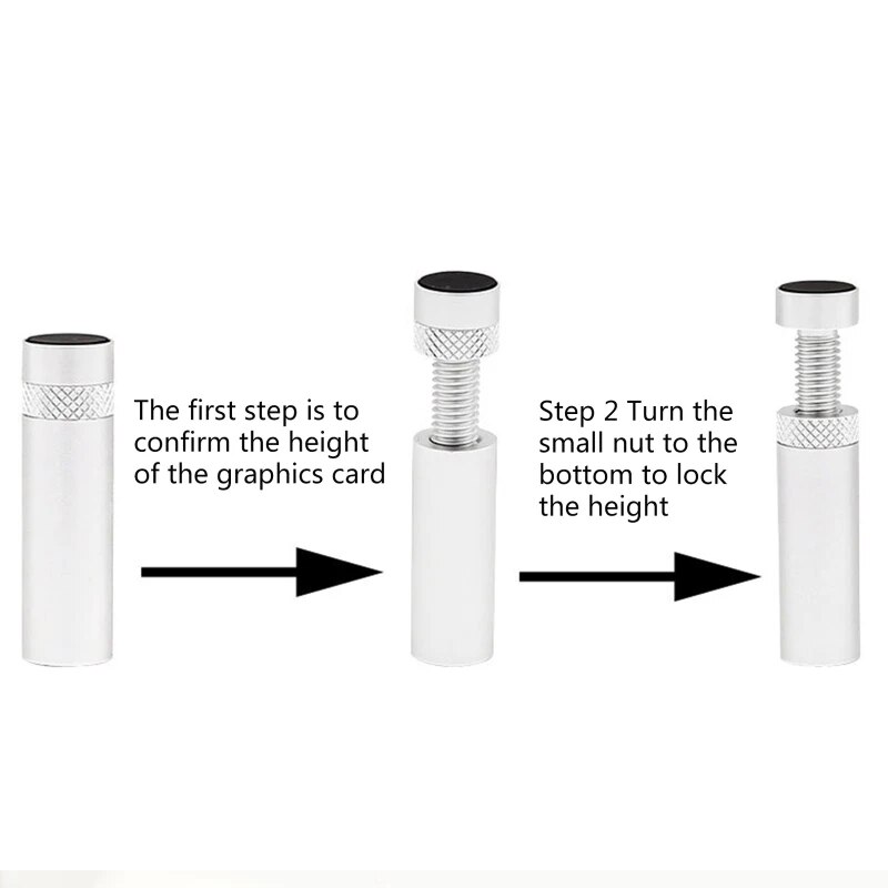 Кронштейн видеокарты имеет телескопическую винтовую конструкцию. Высота может регулироваться свободно, адаптируясь к различным спецификациям шасси. Обеспечивают эффективную поддержку задней части видеокарты и сопровождение видеокарты.<br/>