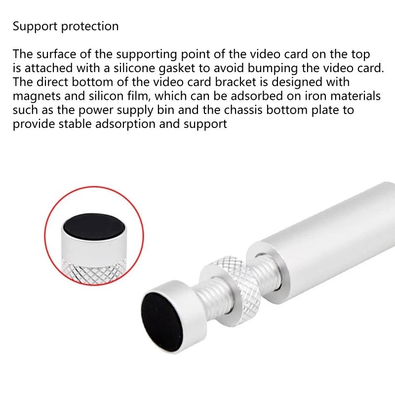 Защитная защита, нескользящее и стабильное магнитное всасывание. На обоих концах есть Нескользящие резиновые прокладки, которые пользователям удобно устанавливать и надежно стоять в корпусе, чтобы избежать ударов по видеокарте. <Br/>