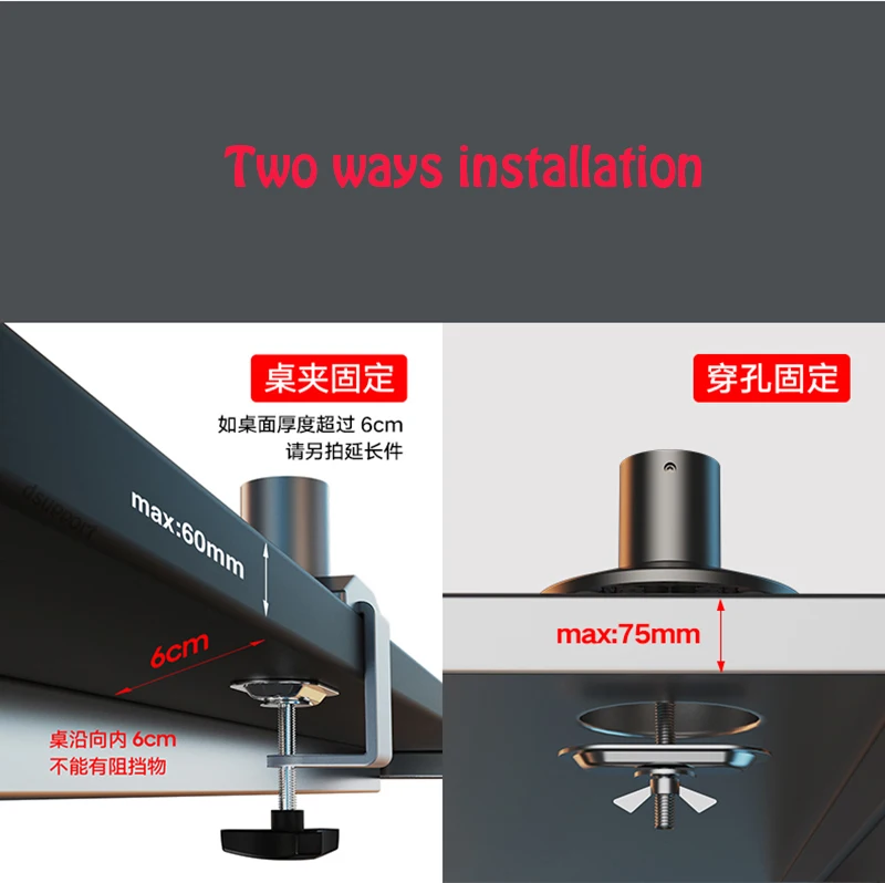 • Два способа установки: настольный зажимной стол толщиной 10-60 мм;