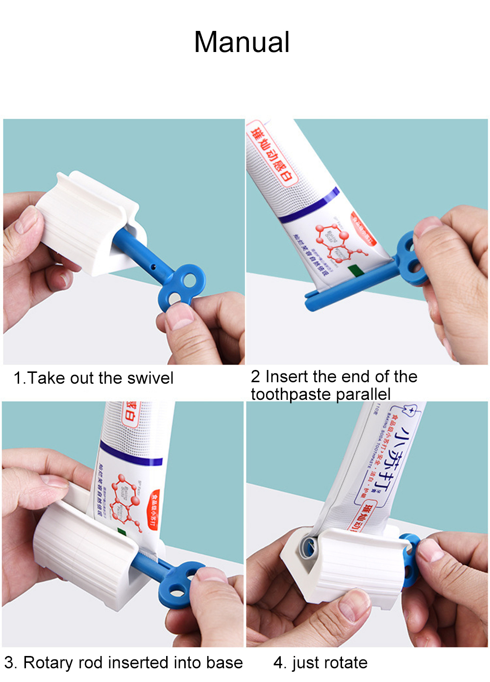 2. Удобство использования: Эта соковыжималка для зубной пасты разработана с поворотной ручкой, вставьте зубную пасту в вал качения, затем поверните ручку, больше не нужно силы, удобно и легко сжимать крем