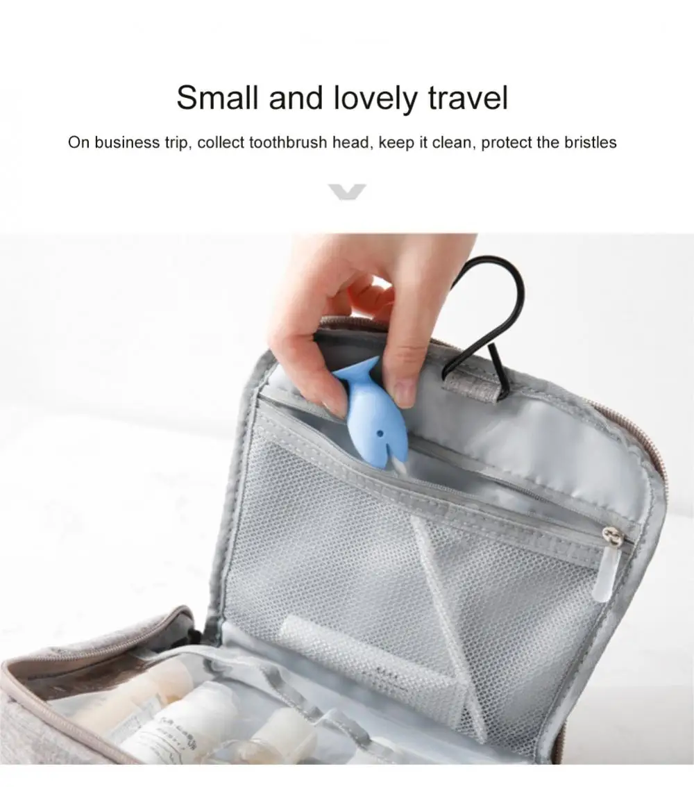 [Стоящая подставка для крышки зубной щетки] --- Это переносная Крышка для зубной щетки. Глаза и рот рыбы-вентиляционное отверстие, всегда гигиеничное. Хвостовой плавник (дно рыбы) имеет присоску, поэтому вы можете разместить зубную щетку.