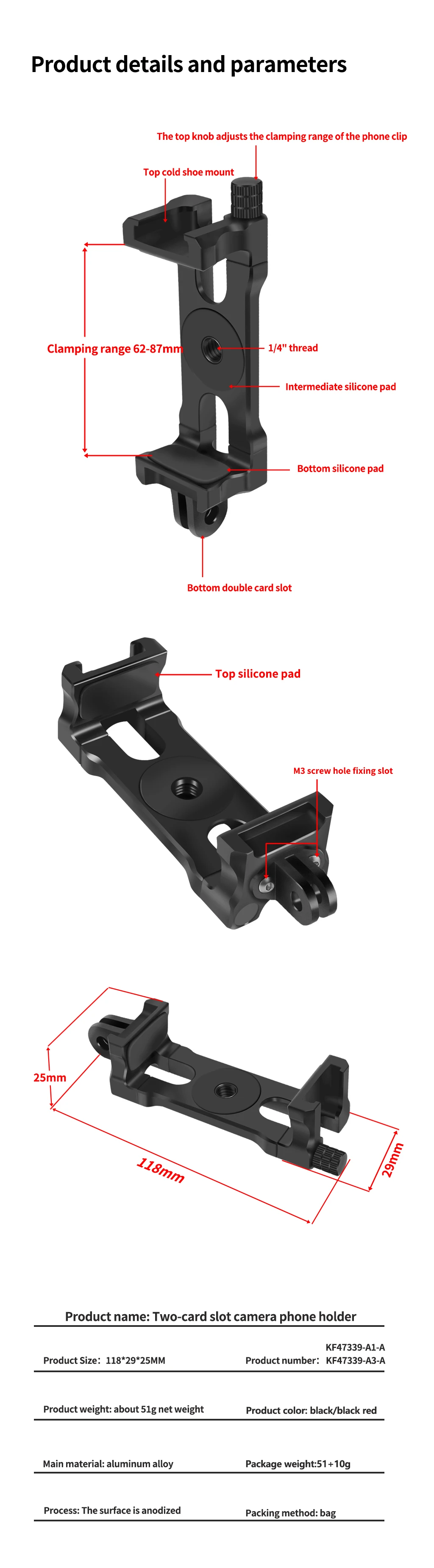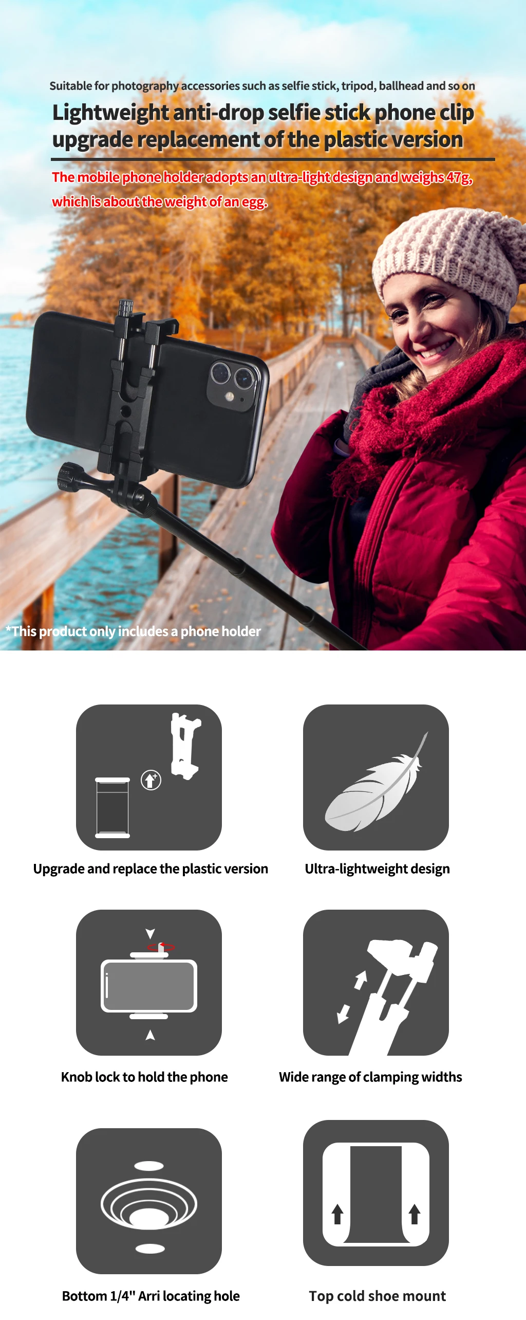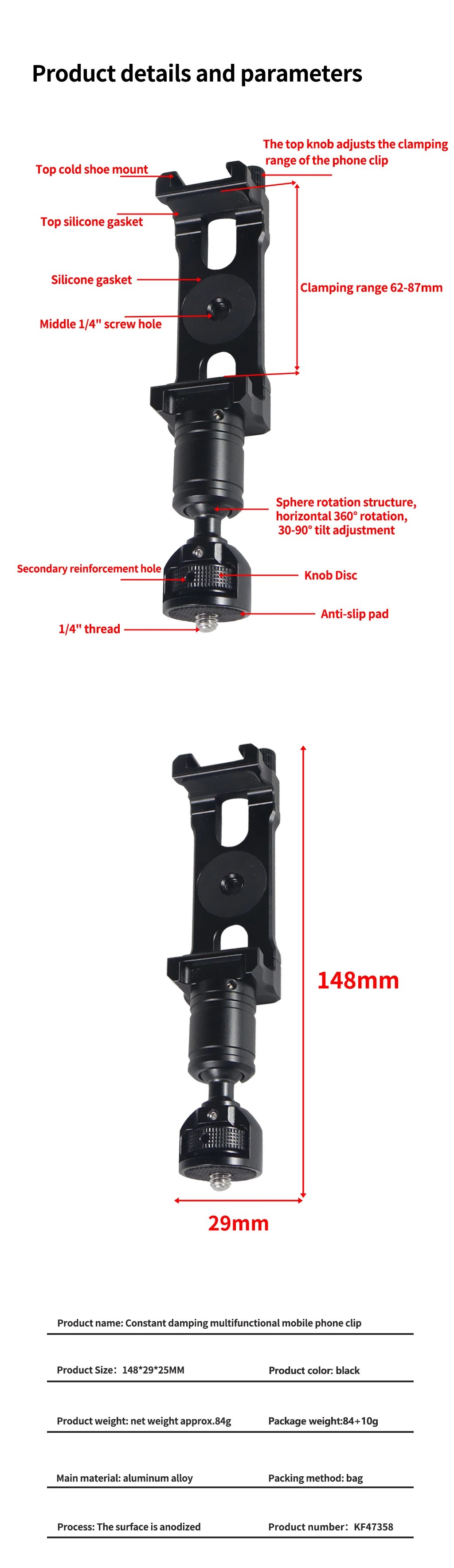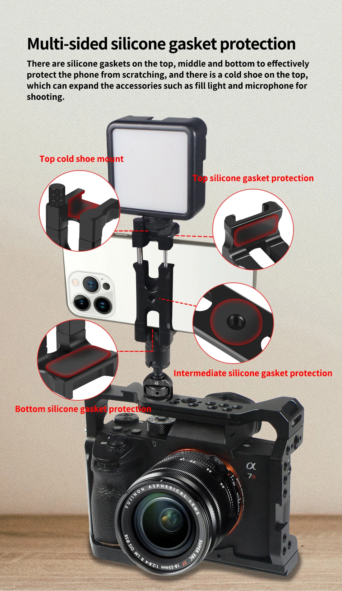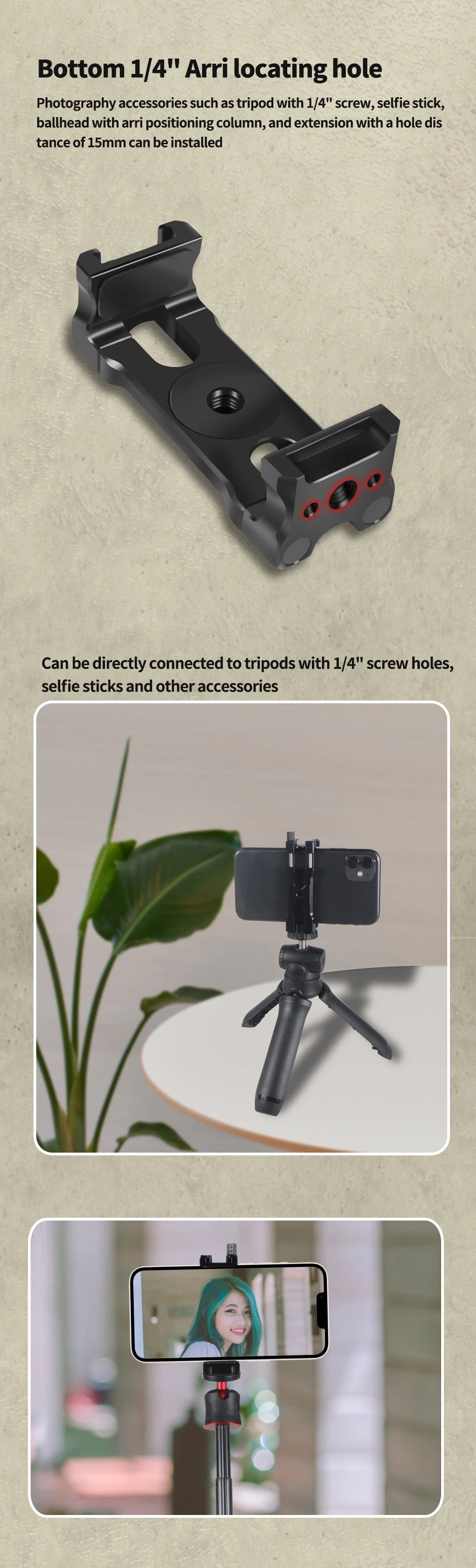 Держатель кронштейна для монитора BGNing из алюминиевого сплава с быстроразъемным отверстием Arri 1/4 дюйма для смартфона 62-87 мм