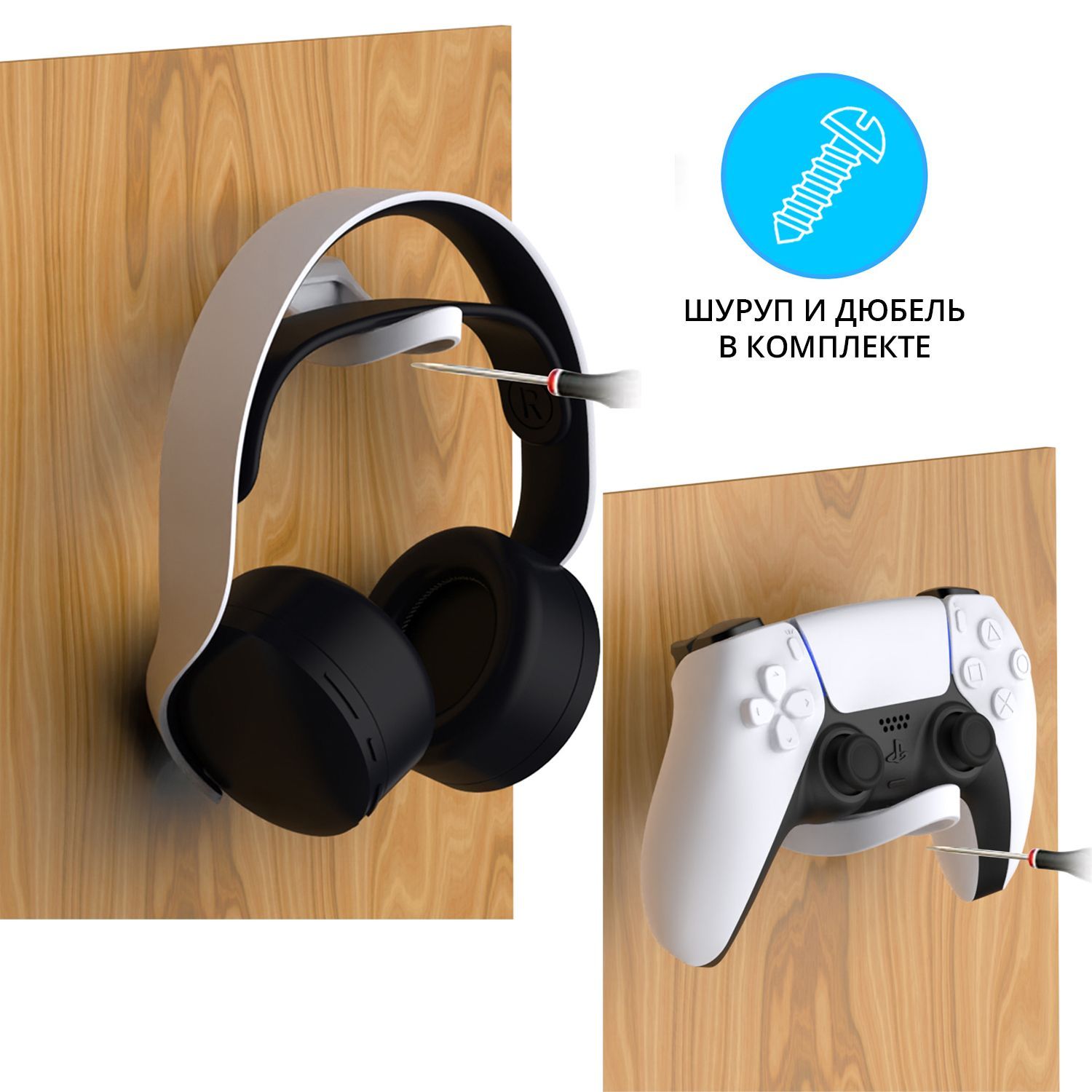 1 держатель для наушников/контроллера, 2 шурупа, 2 дюбеля