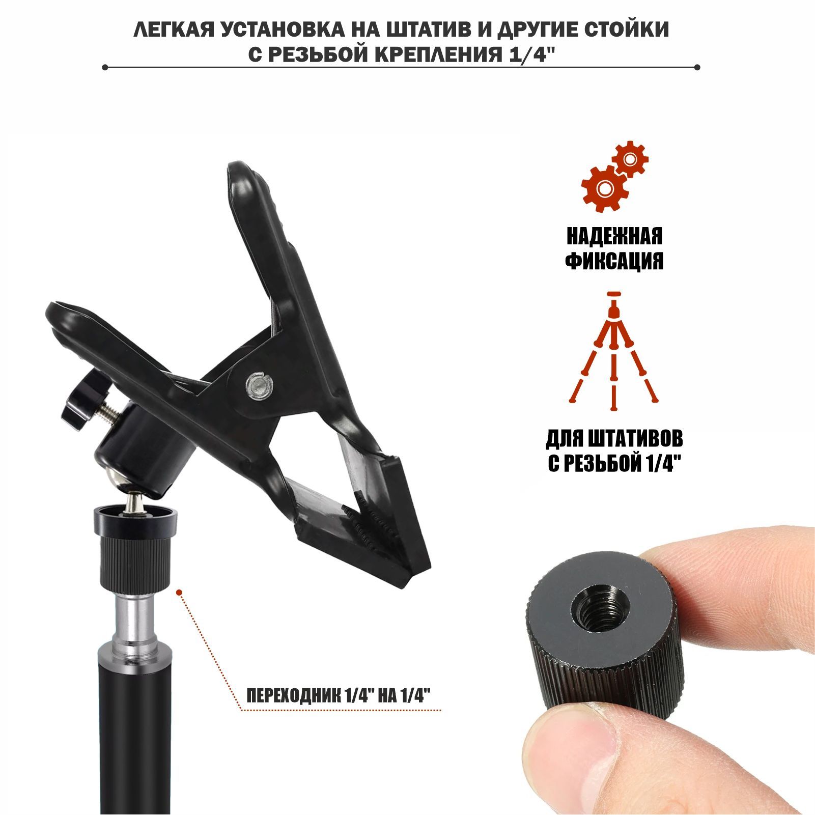 - Легкая установка на штатив и другие стойки с резьбой крепления 1/4".