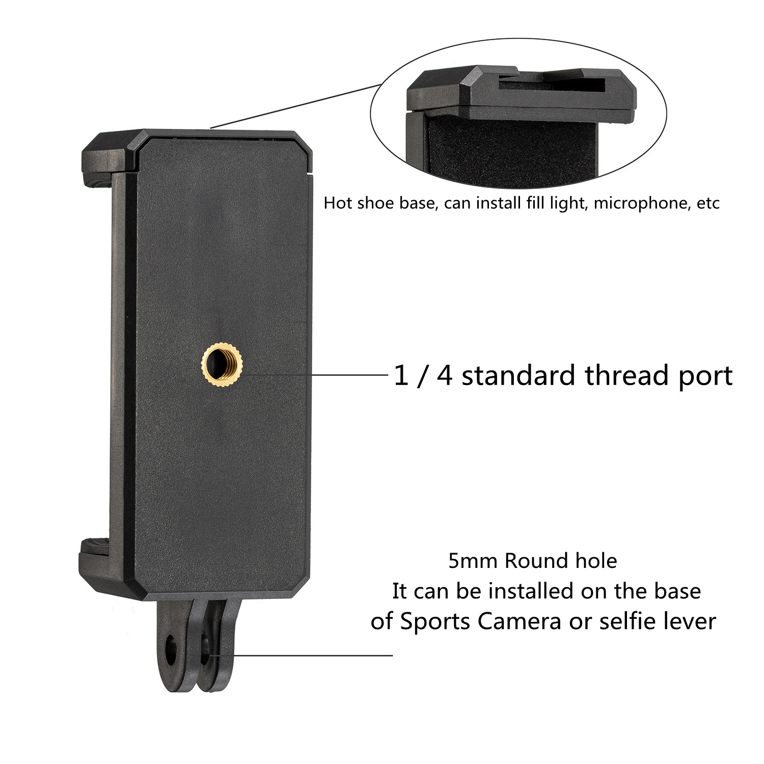 Держатель телефона зажим кронштейн адаптер для смартфона Iphone Huawei Samsung штатив 1/4 дюйма гайка отверстие Gopro селфи палка аксессуары