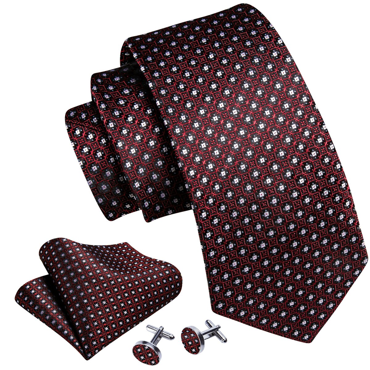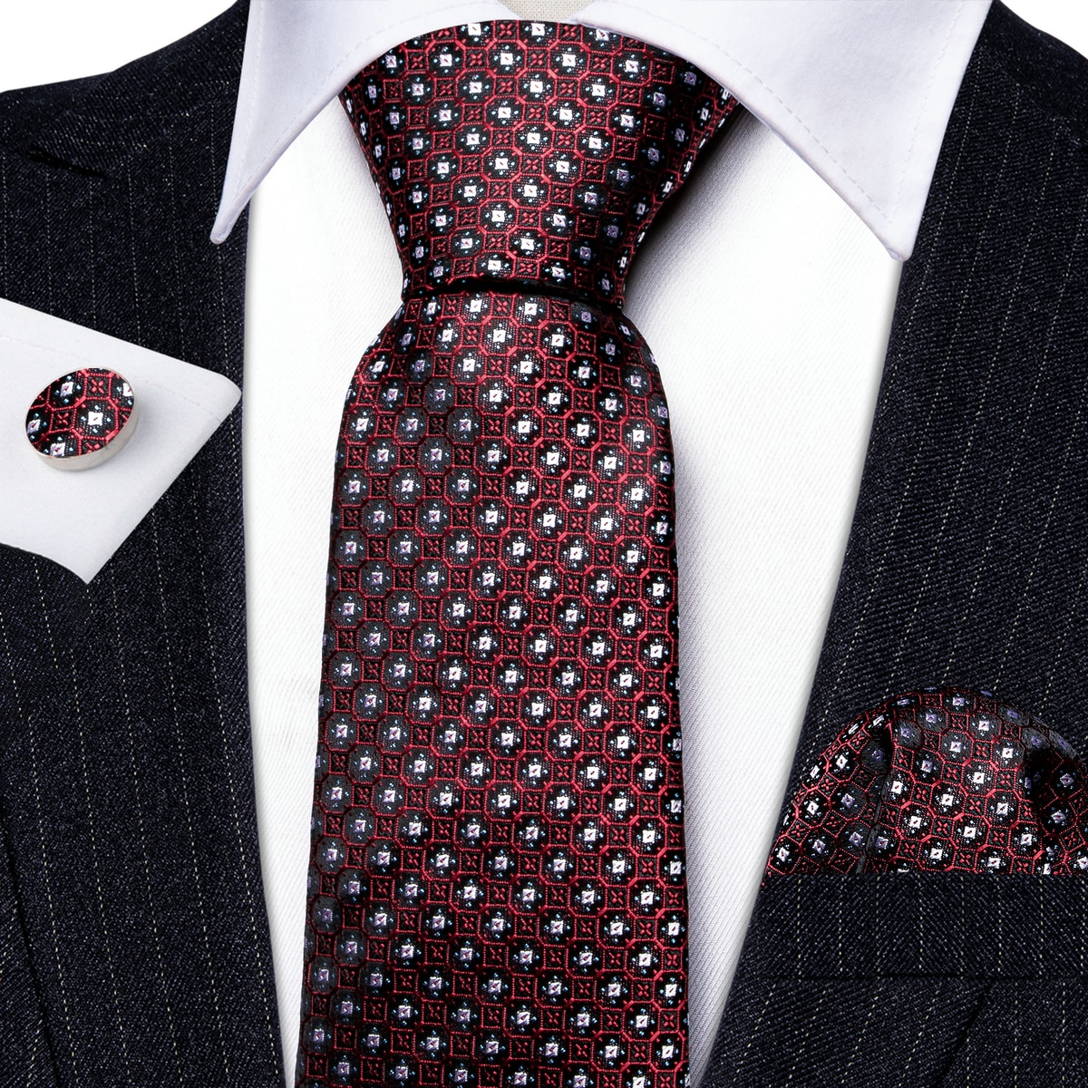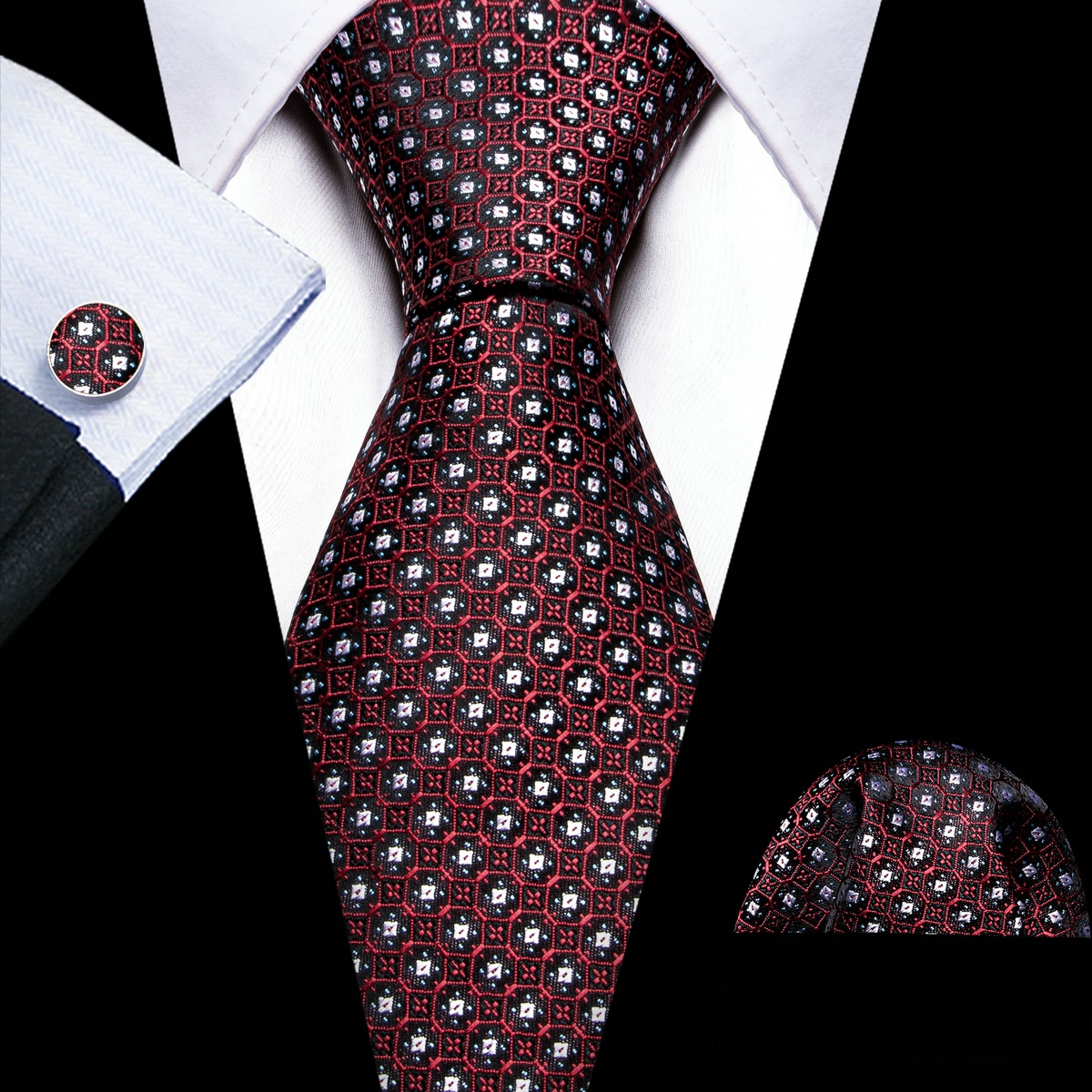 Designer Silk Men Tie Set Red White Plaid Novelty Necktie Pocket Square Cufflinks Wedding Business Party Gift Barry. Wang A-6079