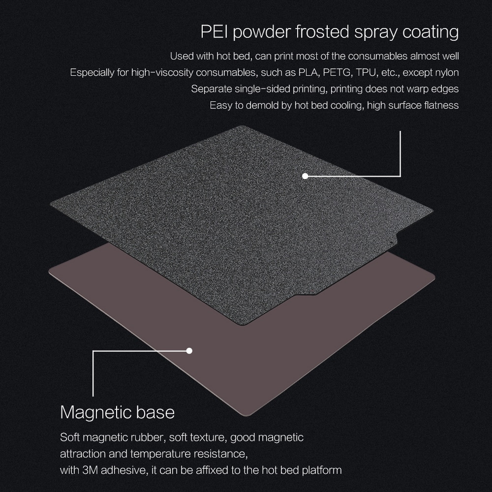 PEI Магнитная Гибкая кровать с подогревом. Улучшенная поверхность 3D принтера.