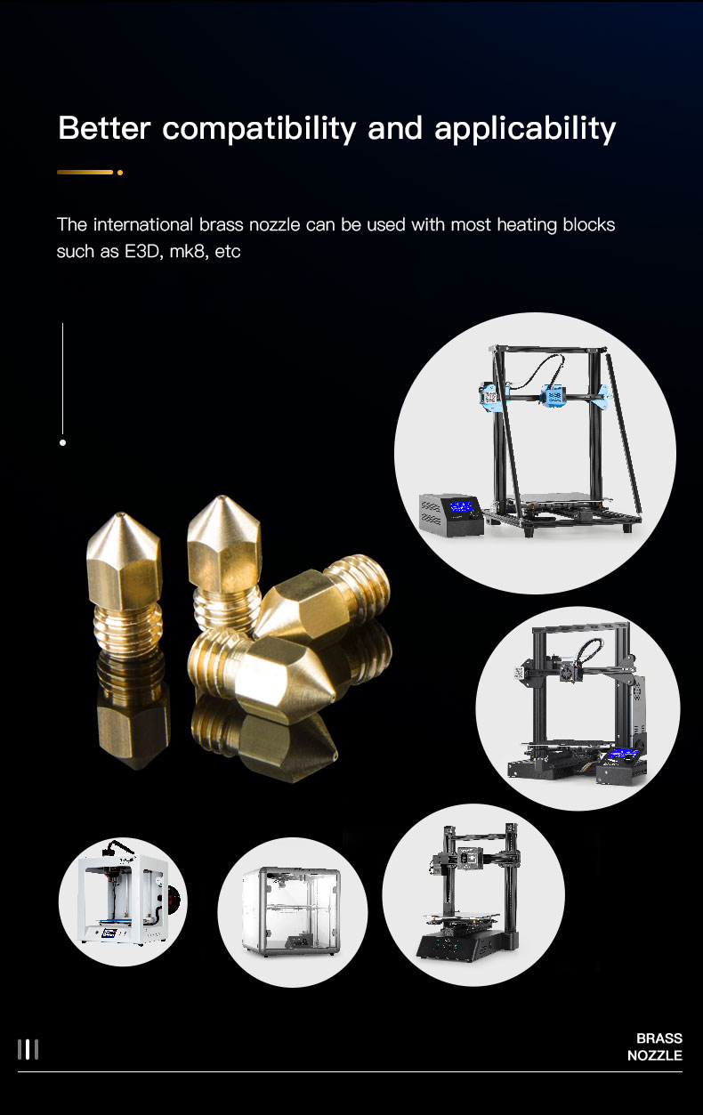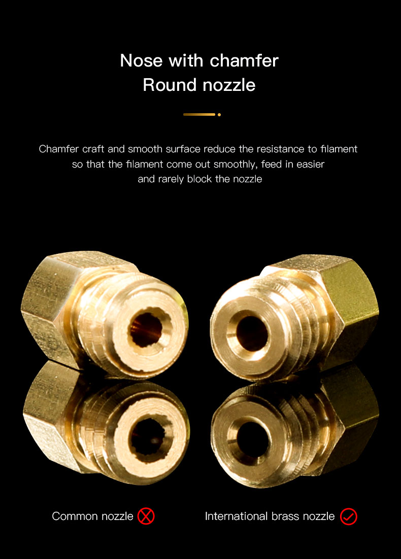 Международное Латунное сопло можно использовать с большинством нагревательных блоков, таких как E3D, MK8 и т. Д.
